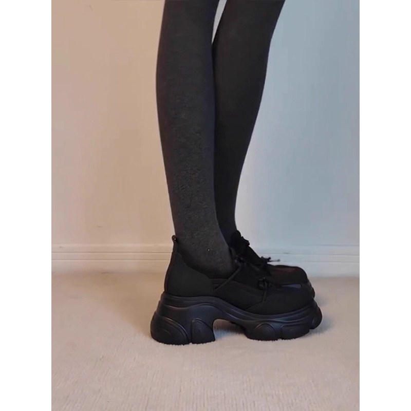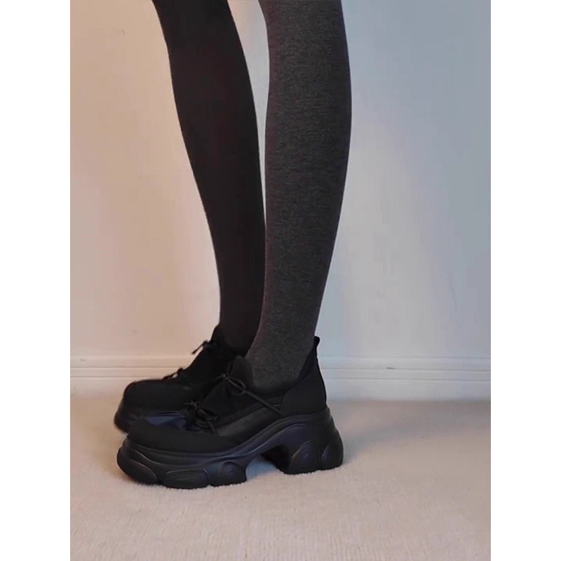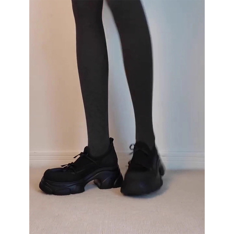 时尚黑武士加绒厚底老爹鞋女增高2025新款女款秋冬运动休闲单鞋子