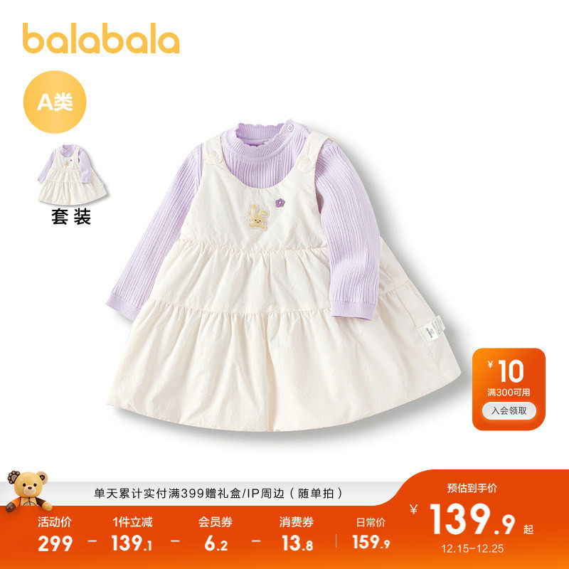 巴拉巴拉宝宝套装秋冬女童背带裙蓬蓬裙两件套洋气甜美可爱时尚萌