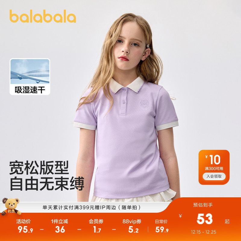 巴拉巴拉童装儿童短袖女童t恤夏装中大童POLO衫休闲上衣凉感抗菌