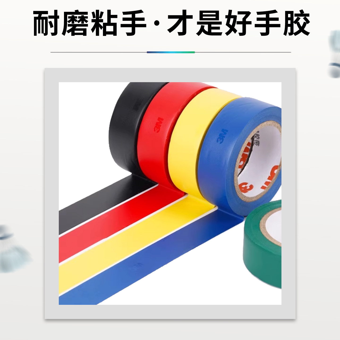 3M羽毛球拍封口条吸汗减震高粘防水全包边手柄缠绕绑带握把高延展不留痕自行车钓鱼竿网球拍把手收口束口圈膜