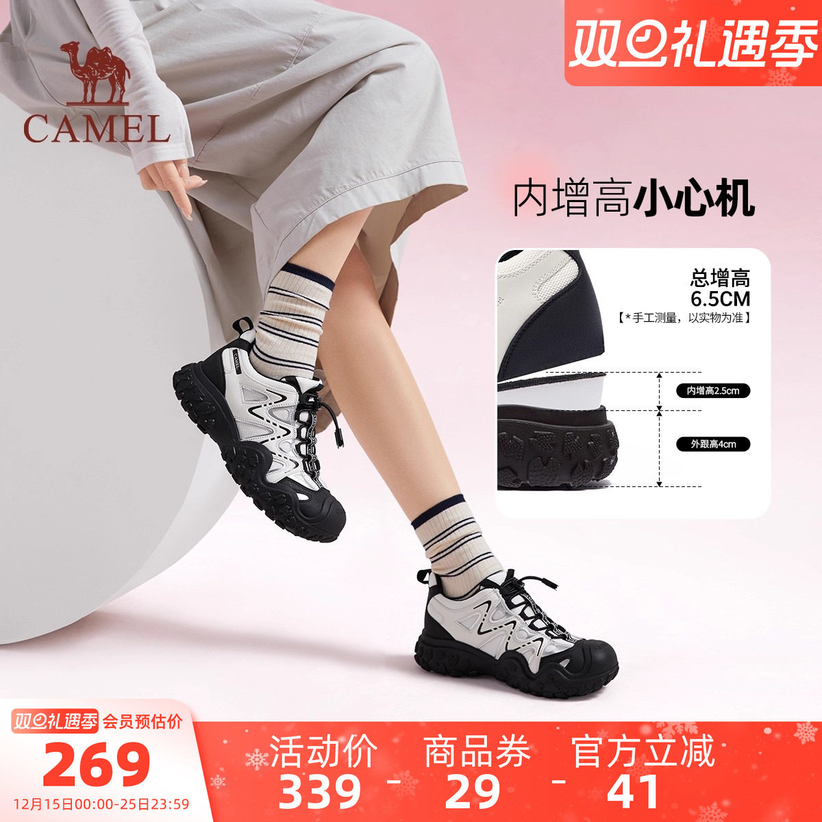骆驼女鞋山系丑萌鞋2025秋新款拼接内增高厚底内增高轻户外休闲鞋