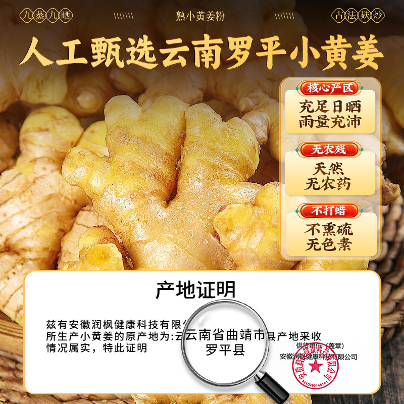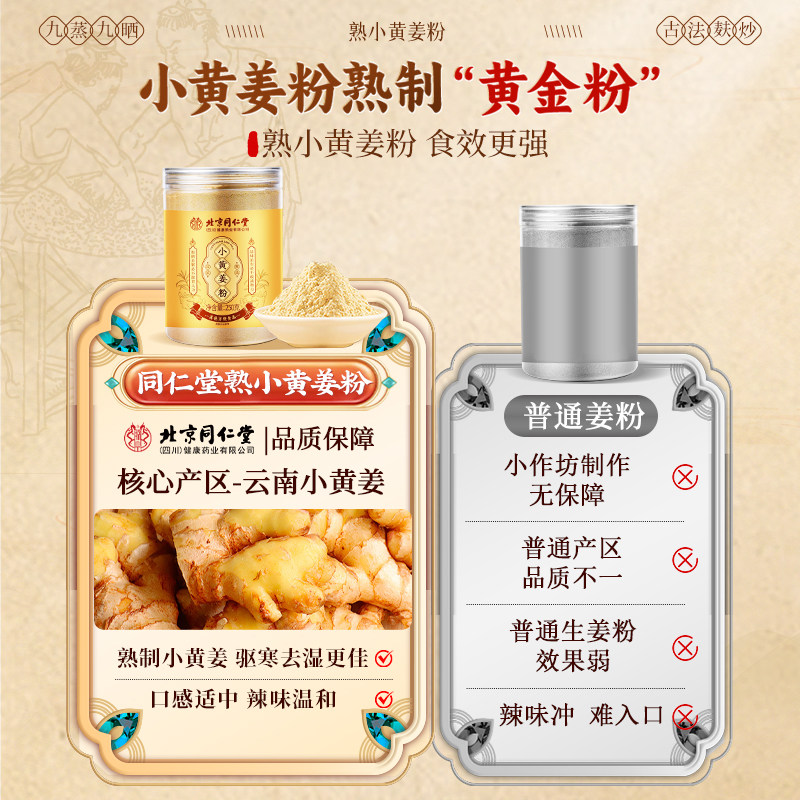 同仁堂云南小黄姜粉官方旗舰店食用特级正品罗平九蒸九晒姜粉冲饮