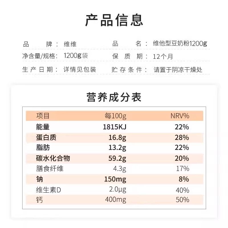 维维豆奶维他型豆奶粉1200g原味早餐冲饮家用微微官方旗舰豆浆粉