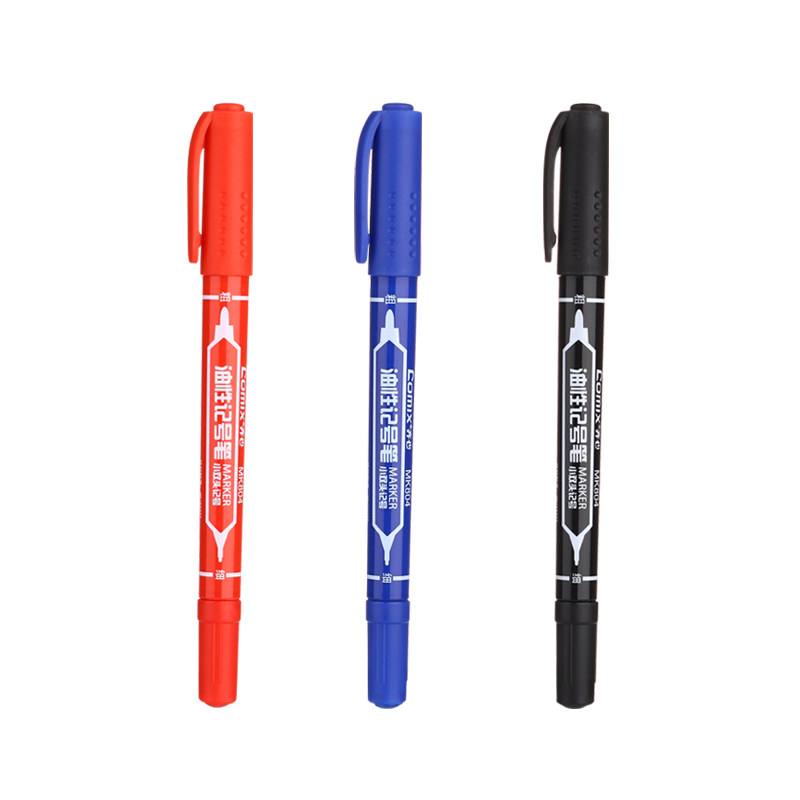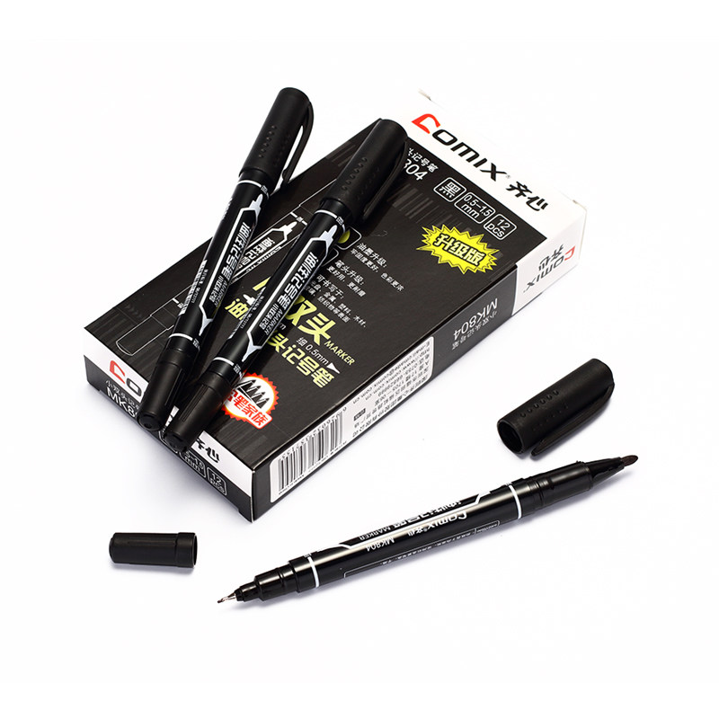 齐心MK804小双头记号笔黑色油性不掉色细头防水速干马克笔勾线笔办公绘画学生美术生专用三色可选