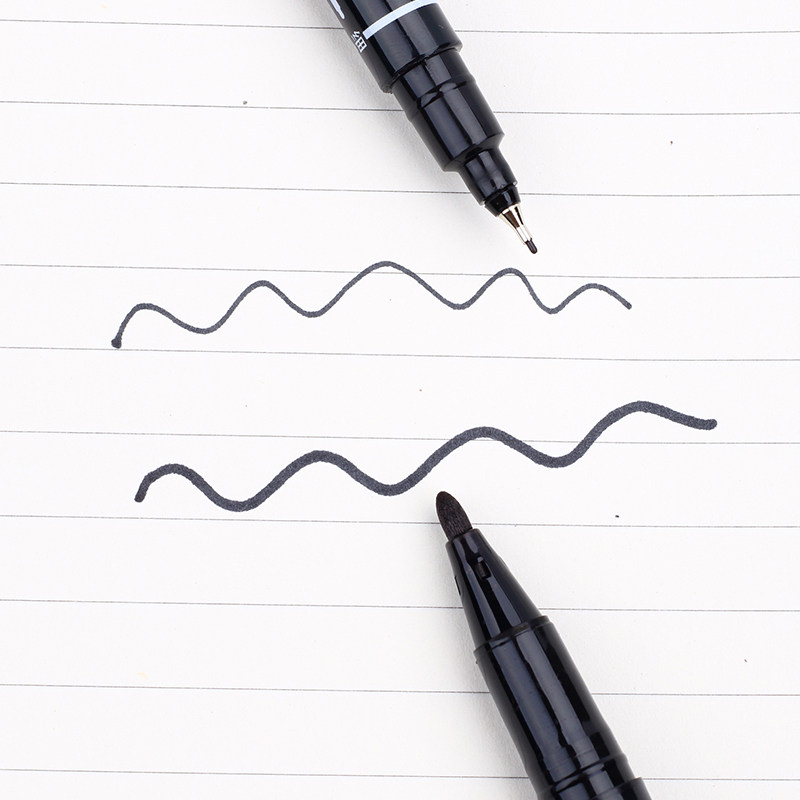 记号笔防水防油不掉色勾线笔美术专用小学生黑色双头笔黑笔油墨笔