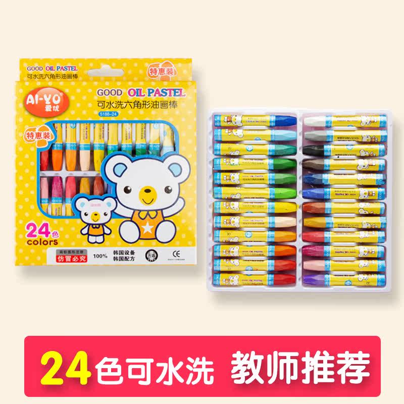 油画棒24色蜡笔幼儿园专用儿童安全无毒不脏手不沾手盒装水溶性可水洗宝宝小学生画画炫彩棒12色