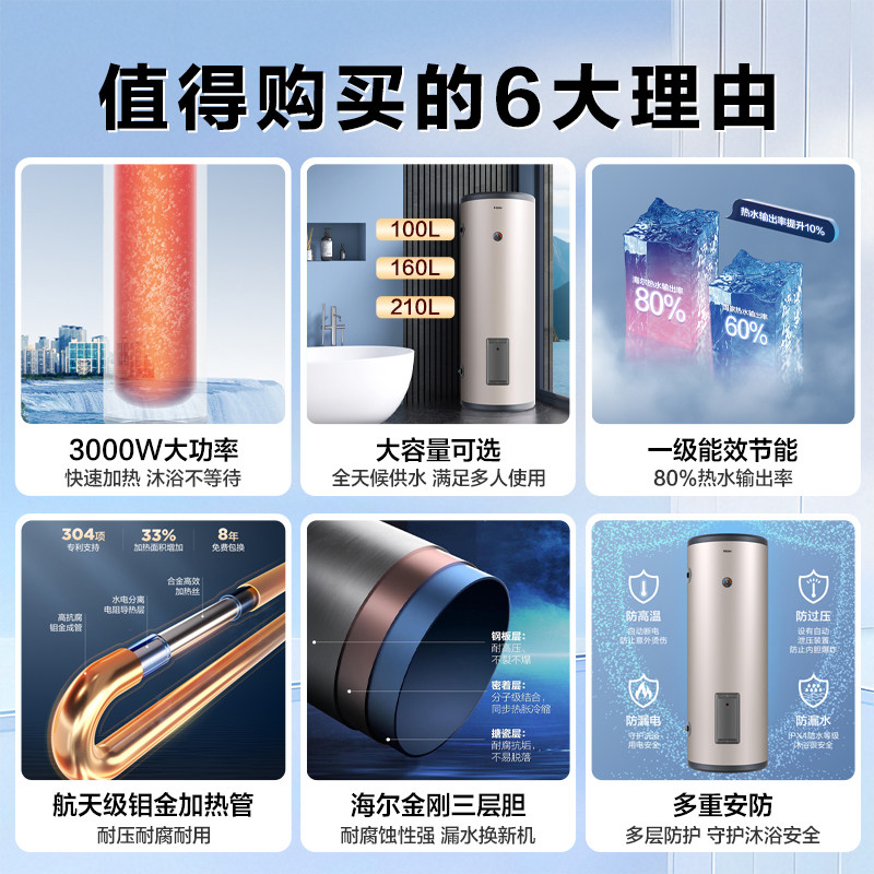 海尔立式电热水器150大容量100L家用200升理发店商用一级能效储水