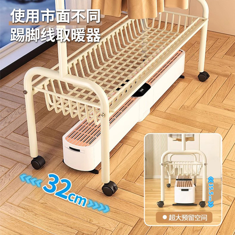 踢脚线取暖器烘衣架专用晾衣架卧室落地移动家用电暖气衣帽凉衣架