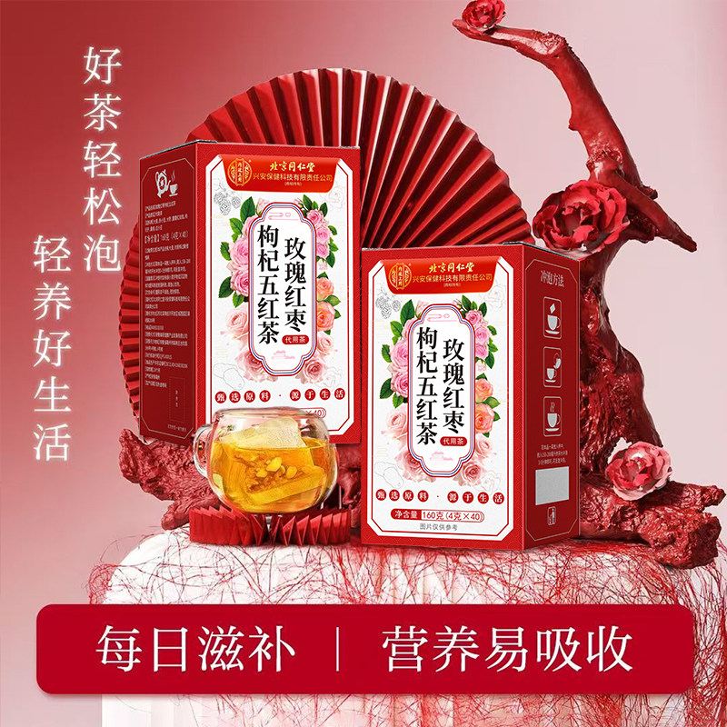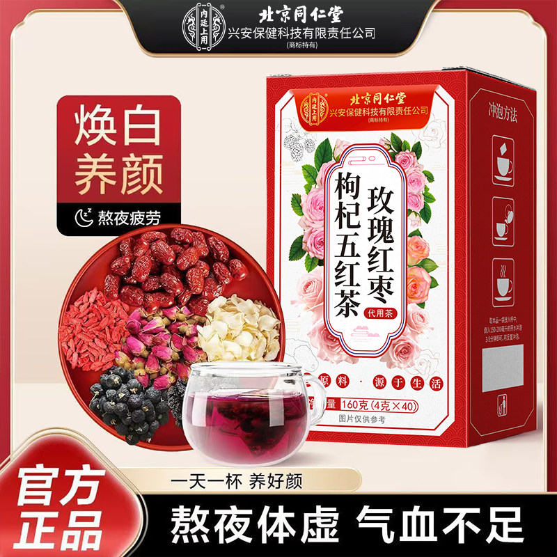 北京同仁堂玫瑰红枣枸杞茶适合女性喝的补气血养气色养素颜花茶包