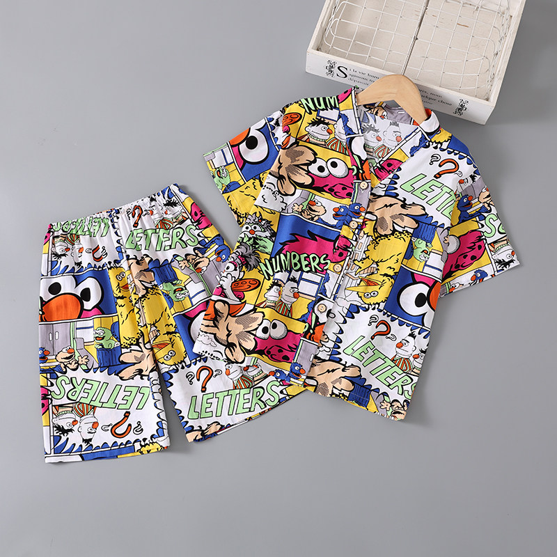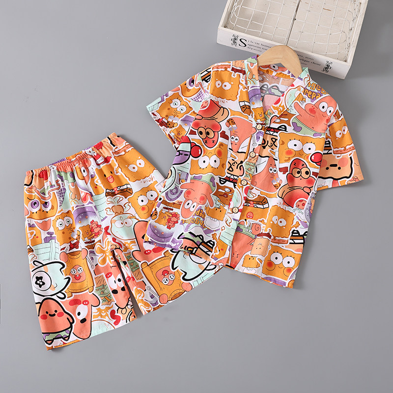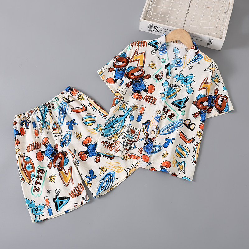 夏季棉绸儿童睡衣短袖男童男孩家居服薄款女童宝宝绵绸空调服套装