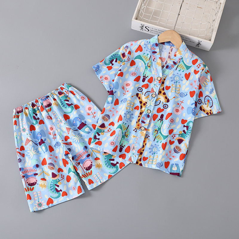 久岁伴儿童睡衣男春秋长袖宽松空调服薄款透气女童开襟家居服套装