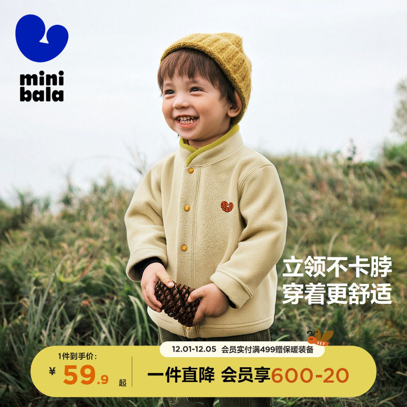 迷你巴拉巴拉男女童毛绒外套宝宝抗静电摇粒绒保暖上衣2025秋新品