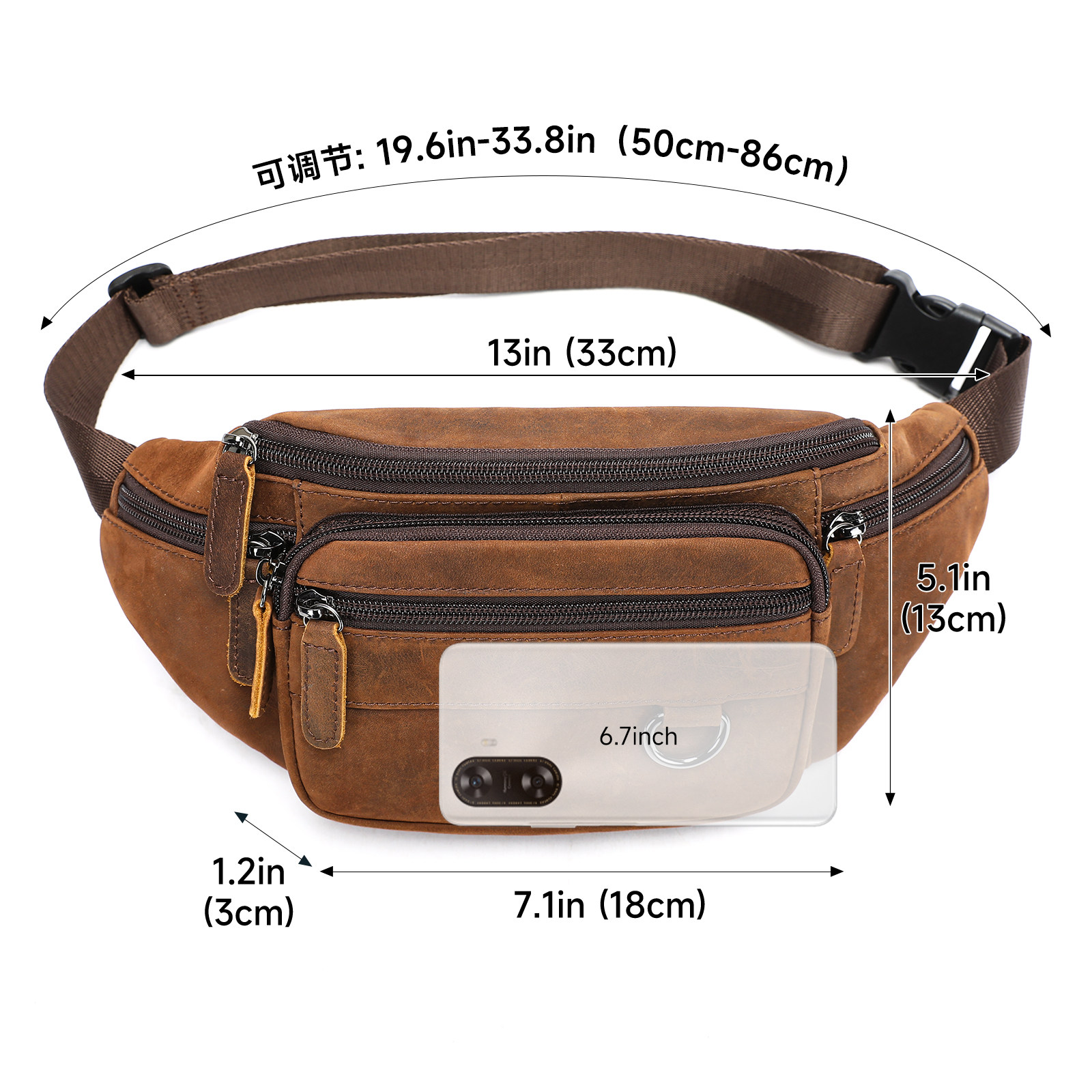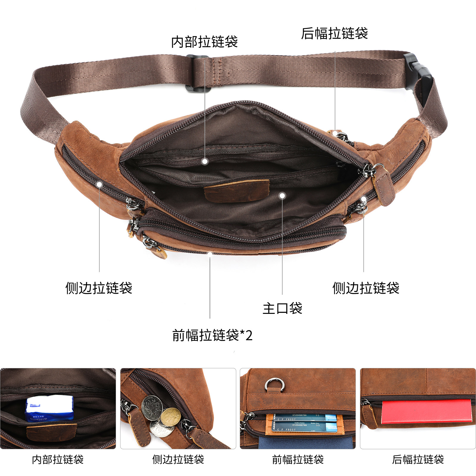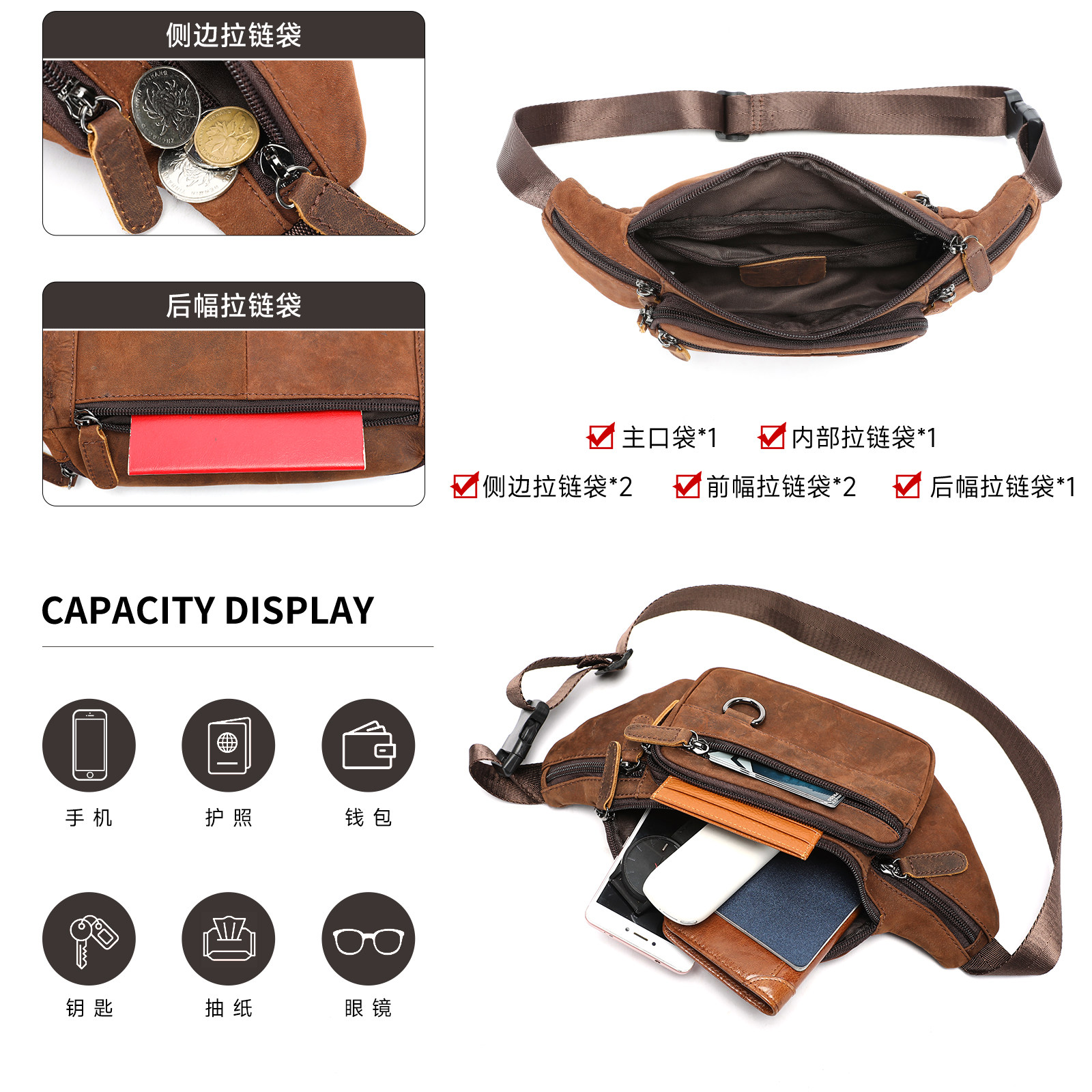 疯马皮男包真皮男腰包高级感单肩斜挎包休闲头层牛皮胸包运动腰包