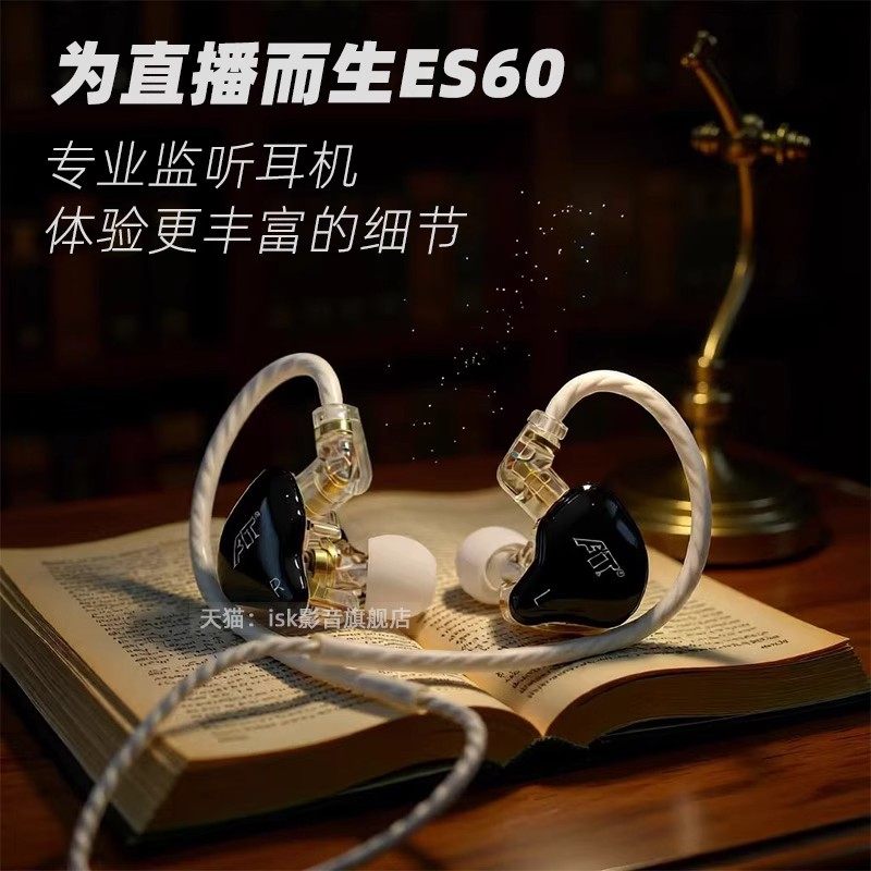 ISK ES60监听耳机直播声卡电脑电竞有线入耳挂耳式长线主播专用