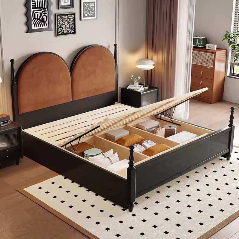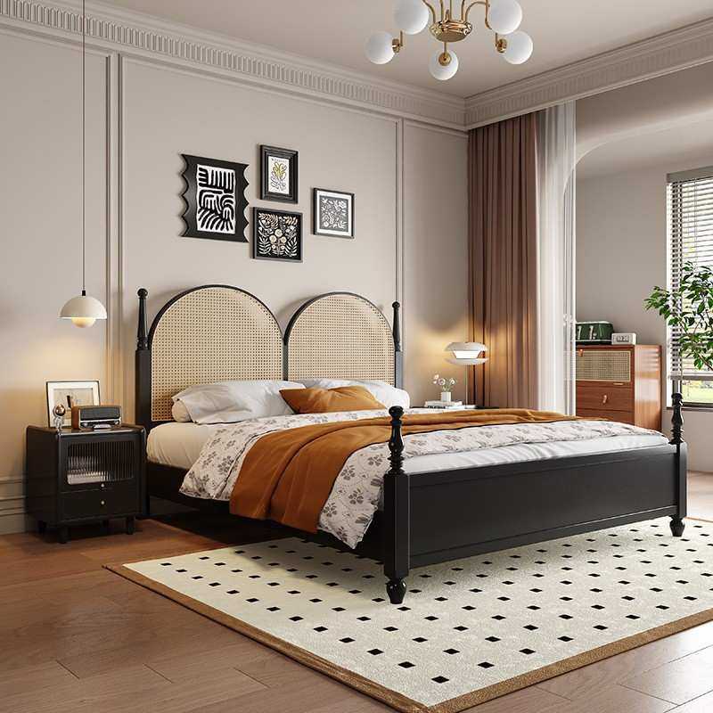 美式复古老巴黎黑色实木床法式乡村民宿藤编主卧储物双人大床新款