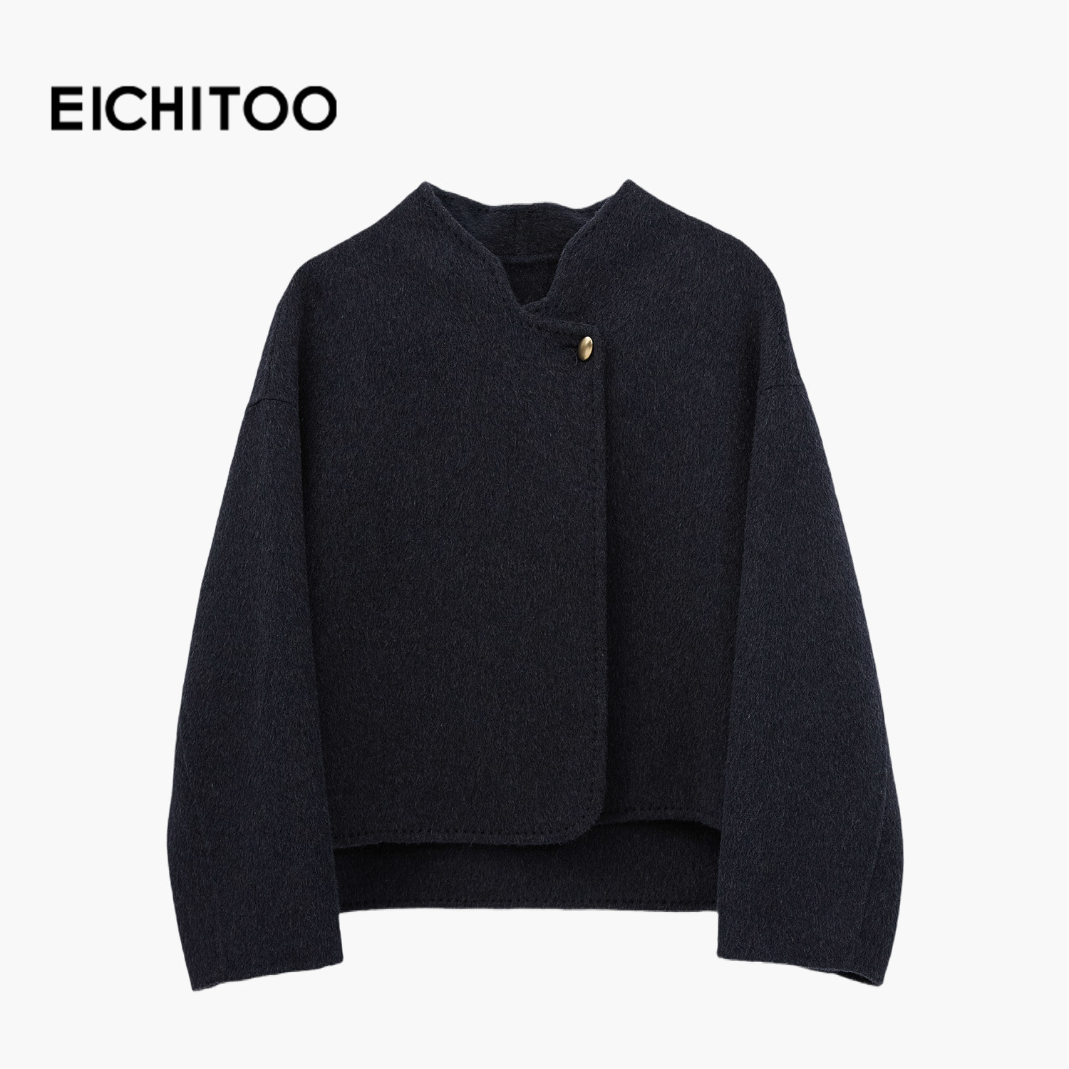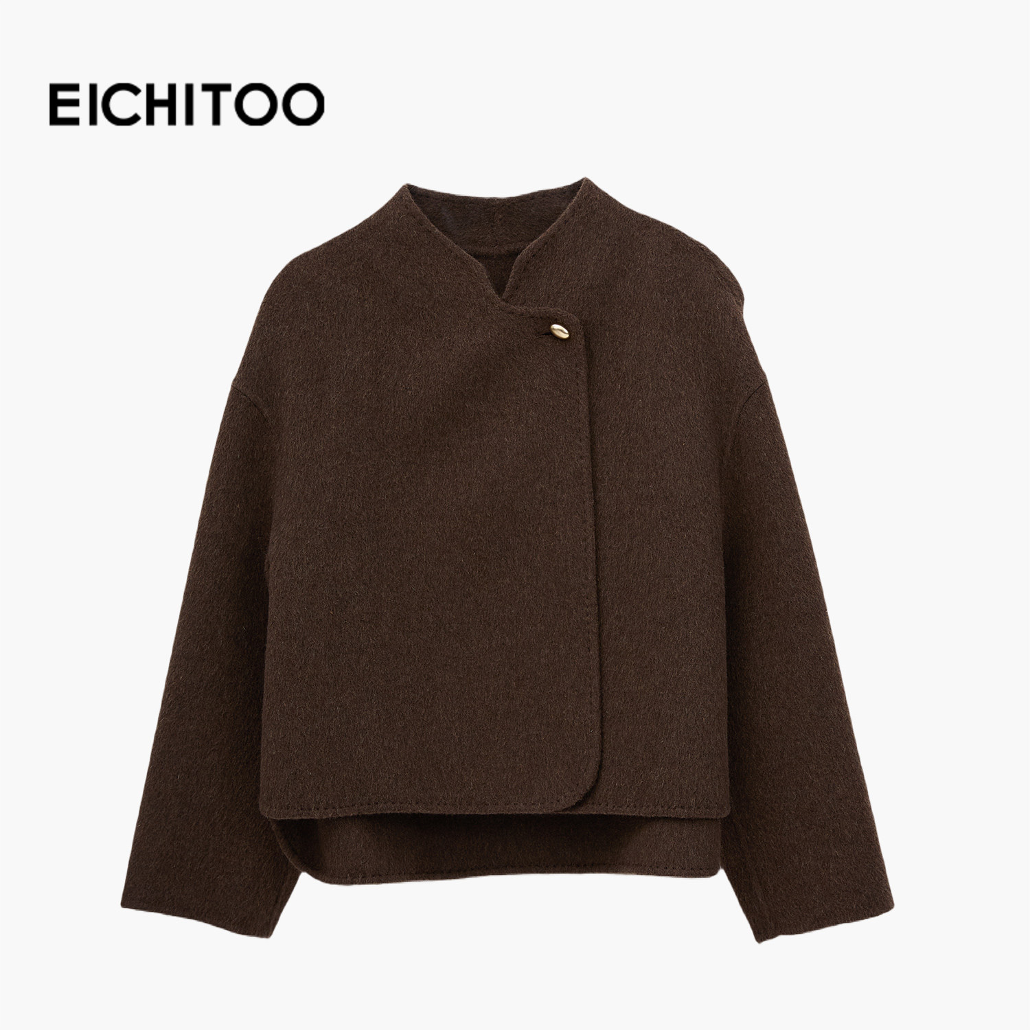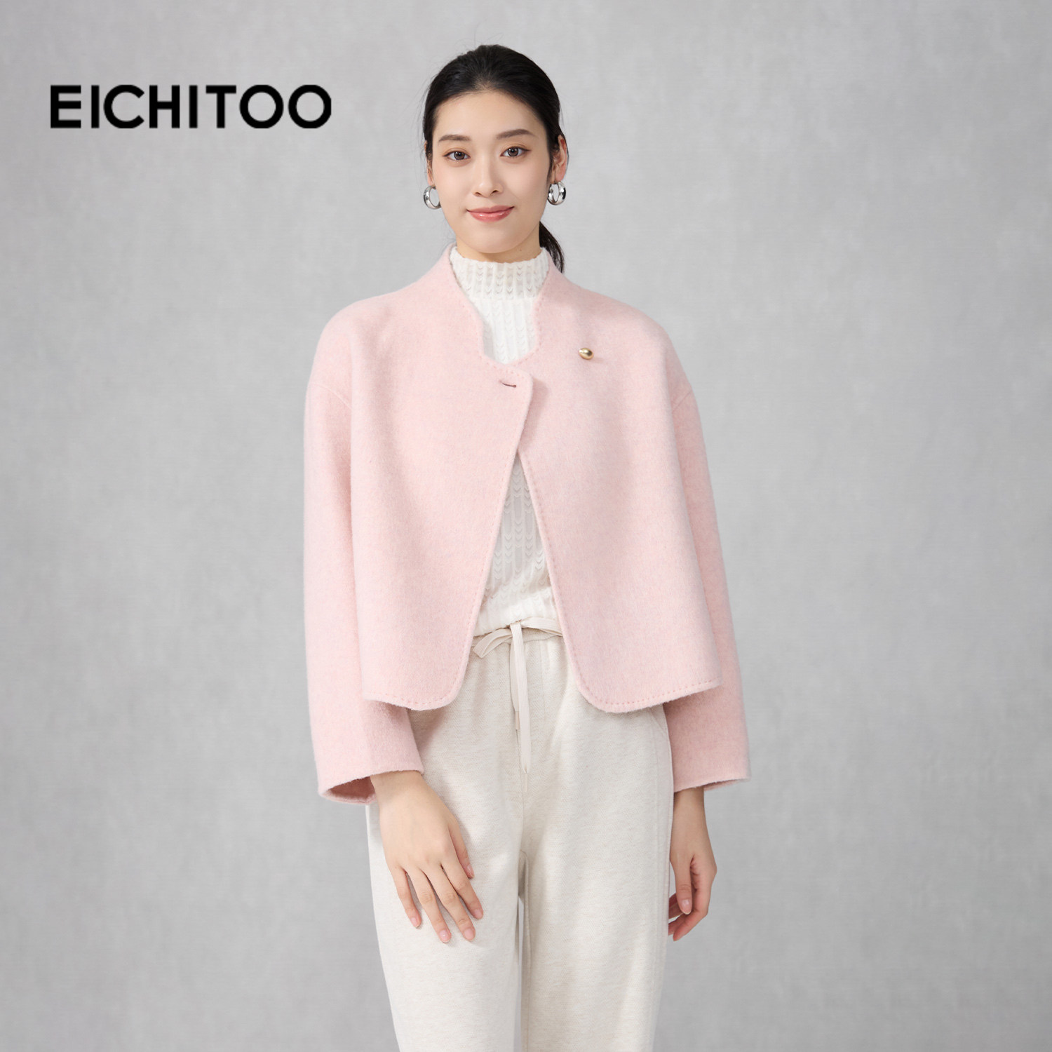 爱居兔简约通勤羊毛双面呢大衣2025年冬季新款女短款毛呢外套