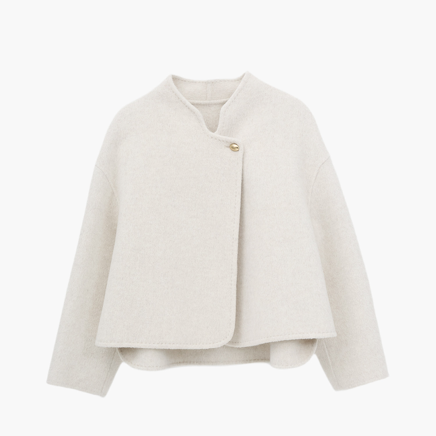 气质双面羊毛大衣女短款2025新款单排扣双面呢圆领小香风毛呢外套