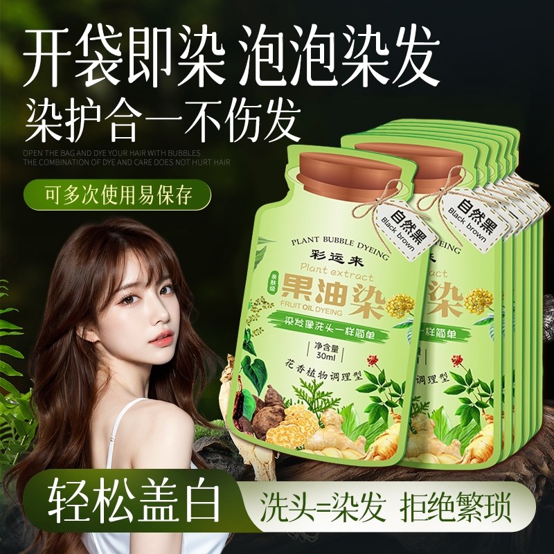 植物泡泡染发剂天然植萃染护膏旗舰店正品持久盖白绿袋泡泡染发膏
