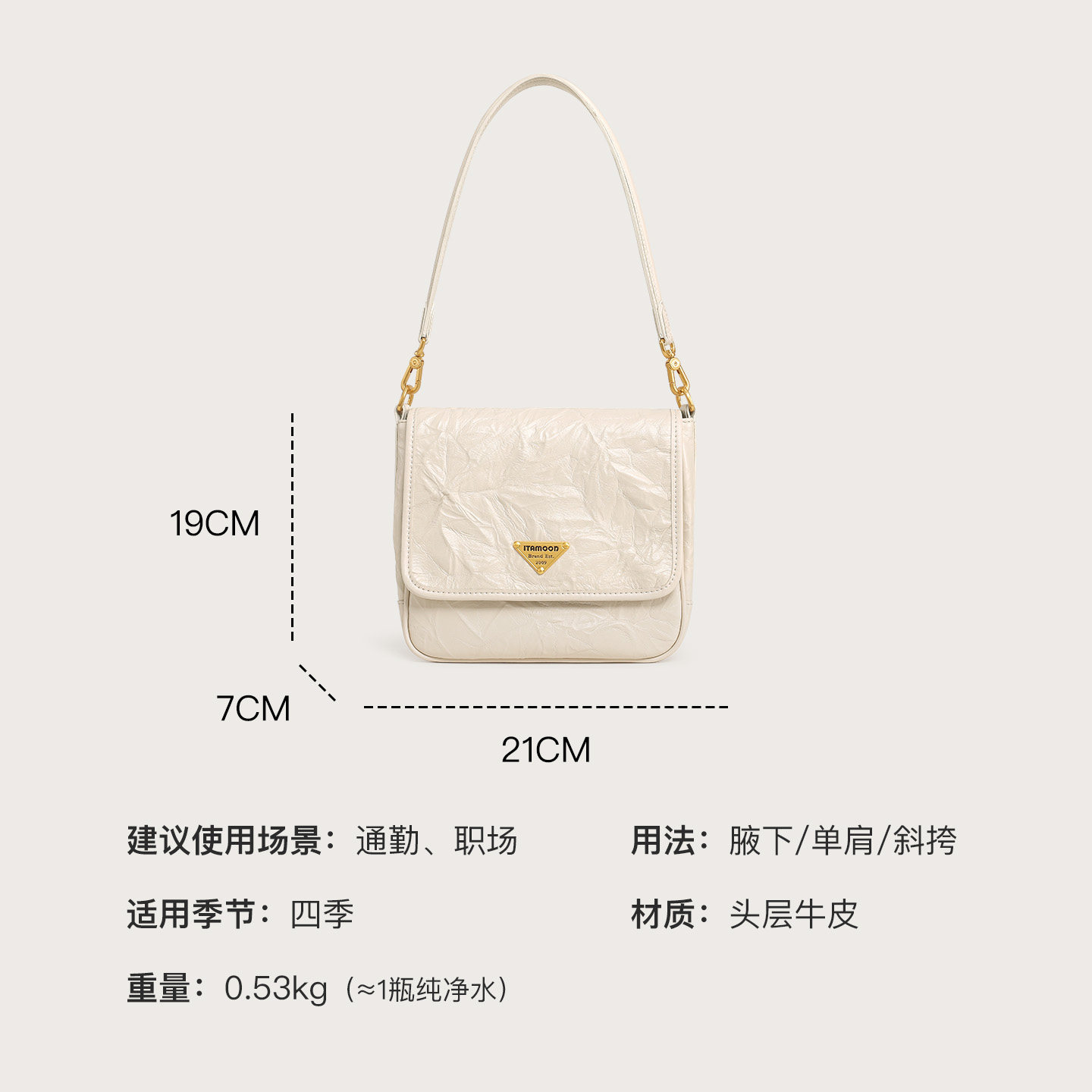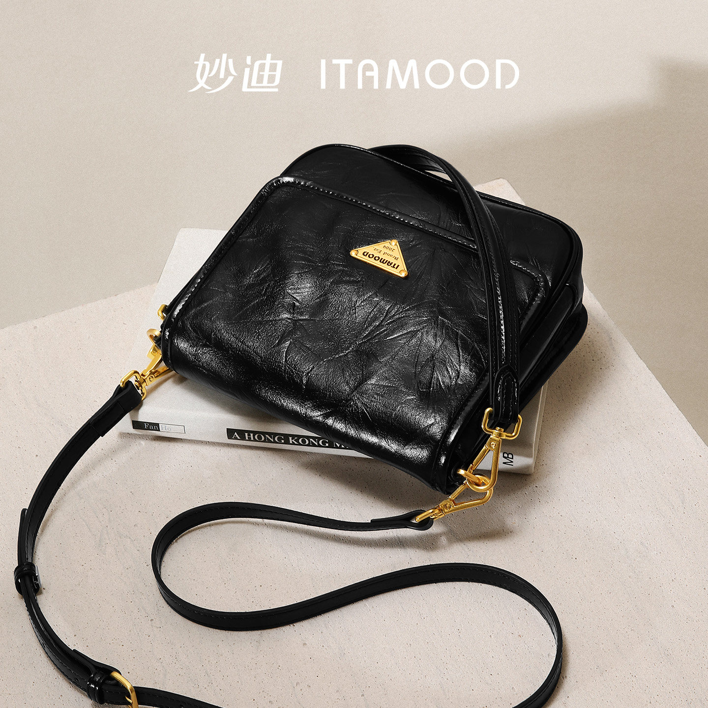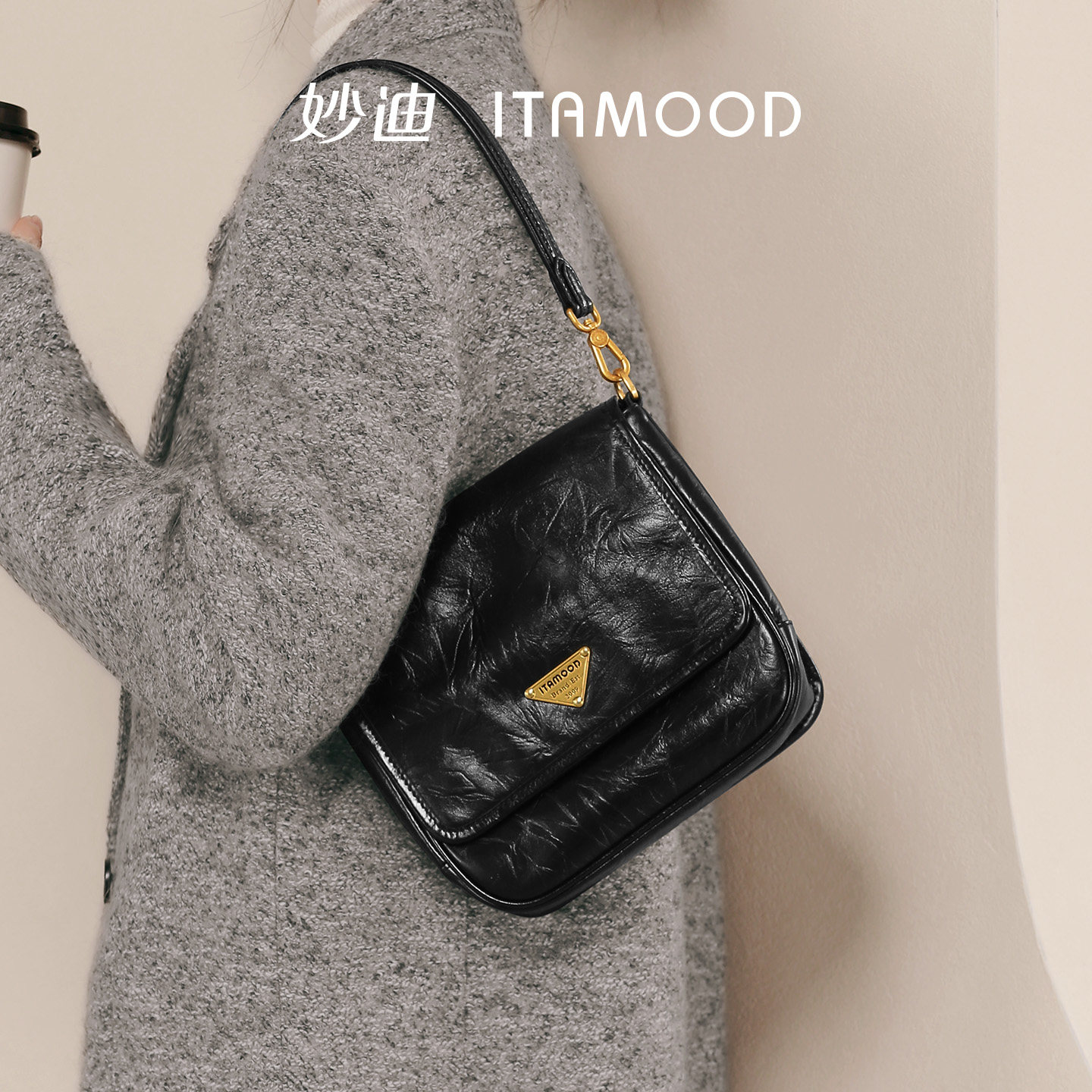 妙迪通勤腋下包新款头层牛皮质感精致小包包复古邮差包轻斜挎包女