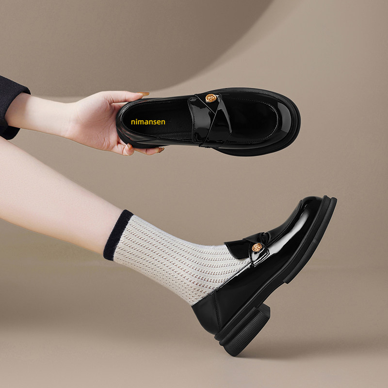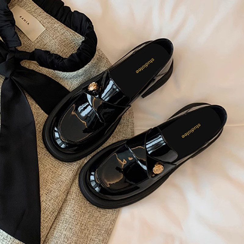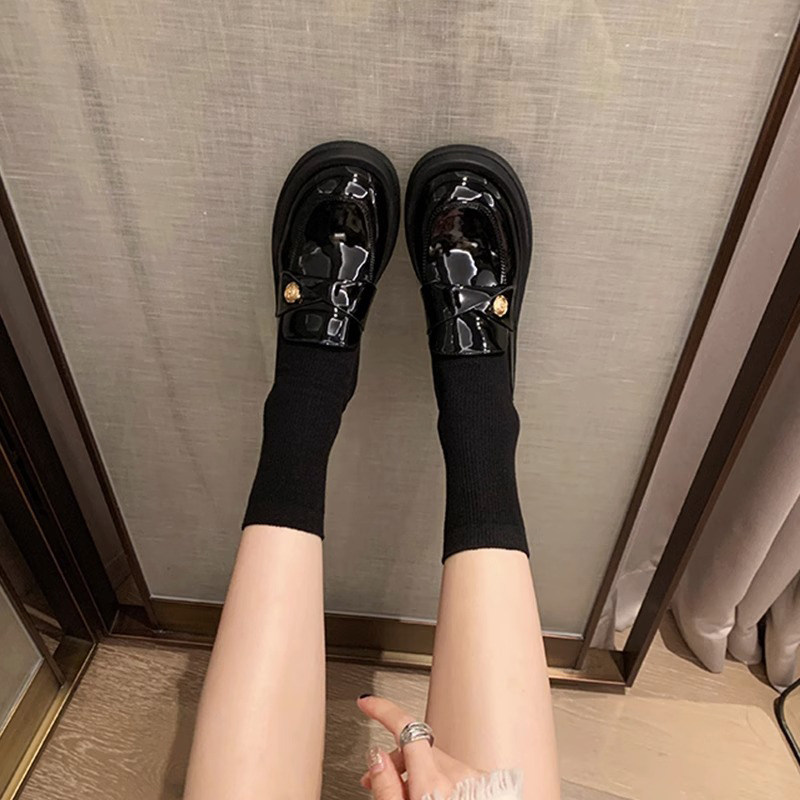升级版~张元英同款miu风金币英伦学院粗跟高跟真皮乐福鞋女小皮鞋