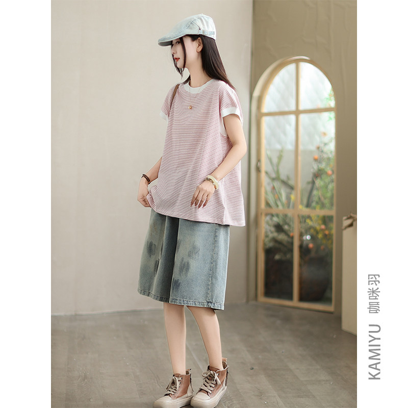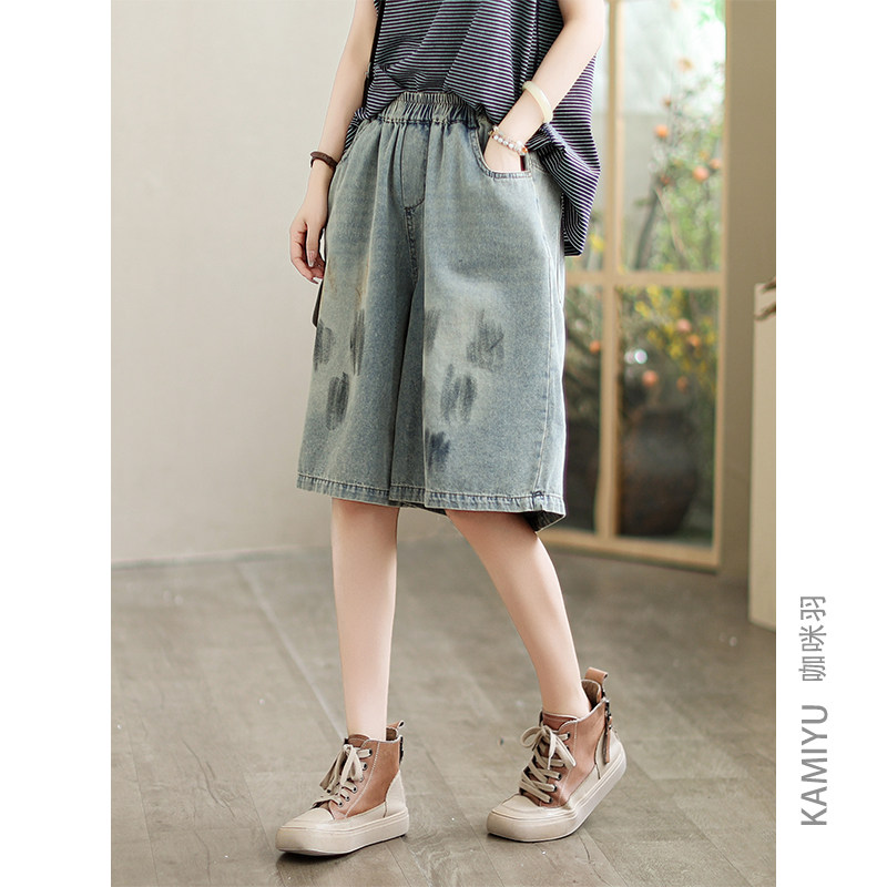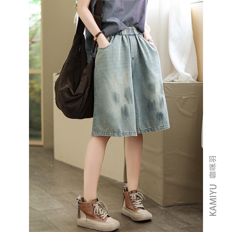 2025新款夏文艺休闲百搭宽松直筒复古水洗自然腰显瘦女装牛仔短裤