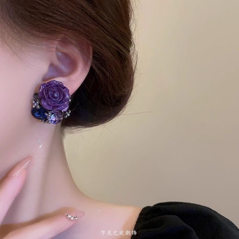 紫色耳饰花朵耳钉女小众设计复古气质独特耳环2025新款爆款高级感