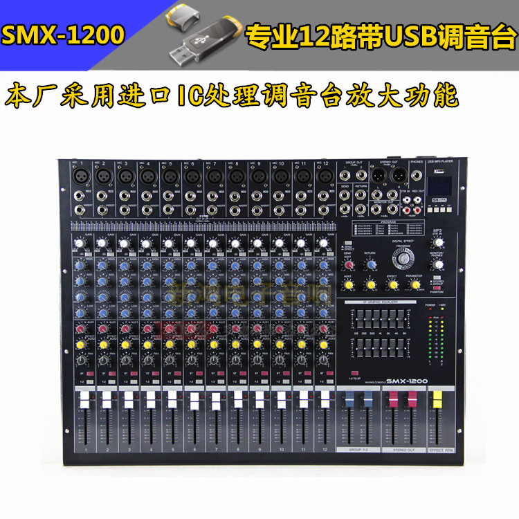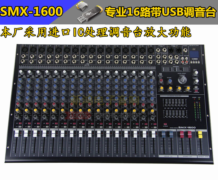声艺SMX8/12/16路专业调音台带USB蓝牙舞台演出KTV会议混响器