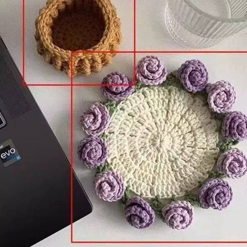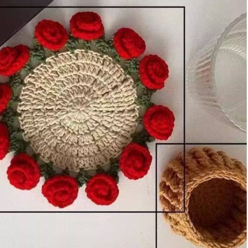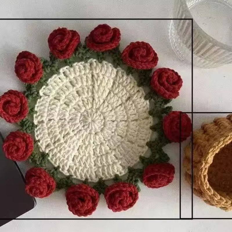 手工编织毛线diy玫瑰花束迷你毯子材料包钩针创意礼物杯垫非成品