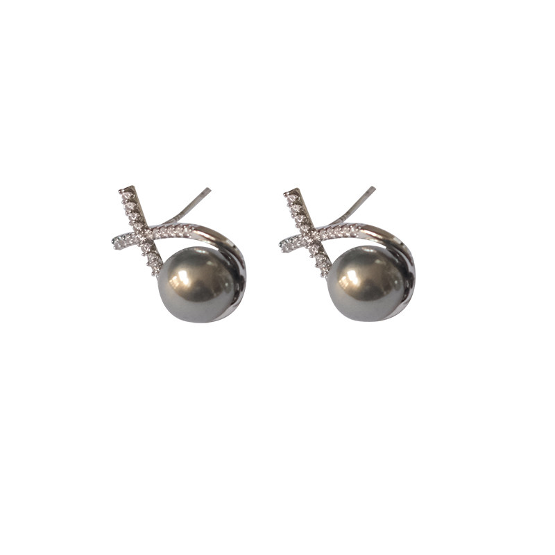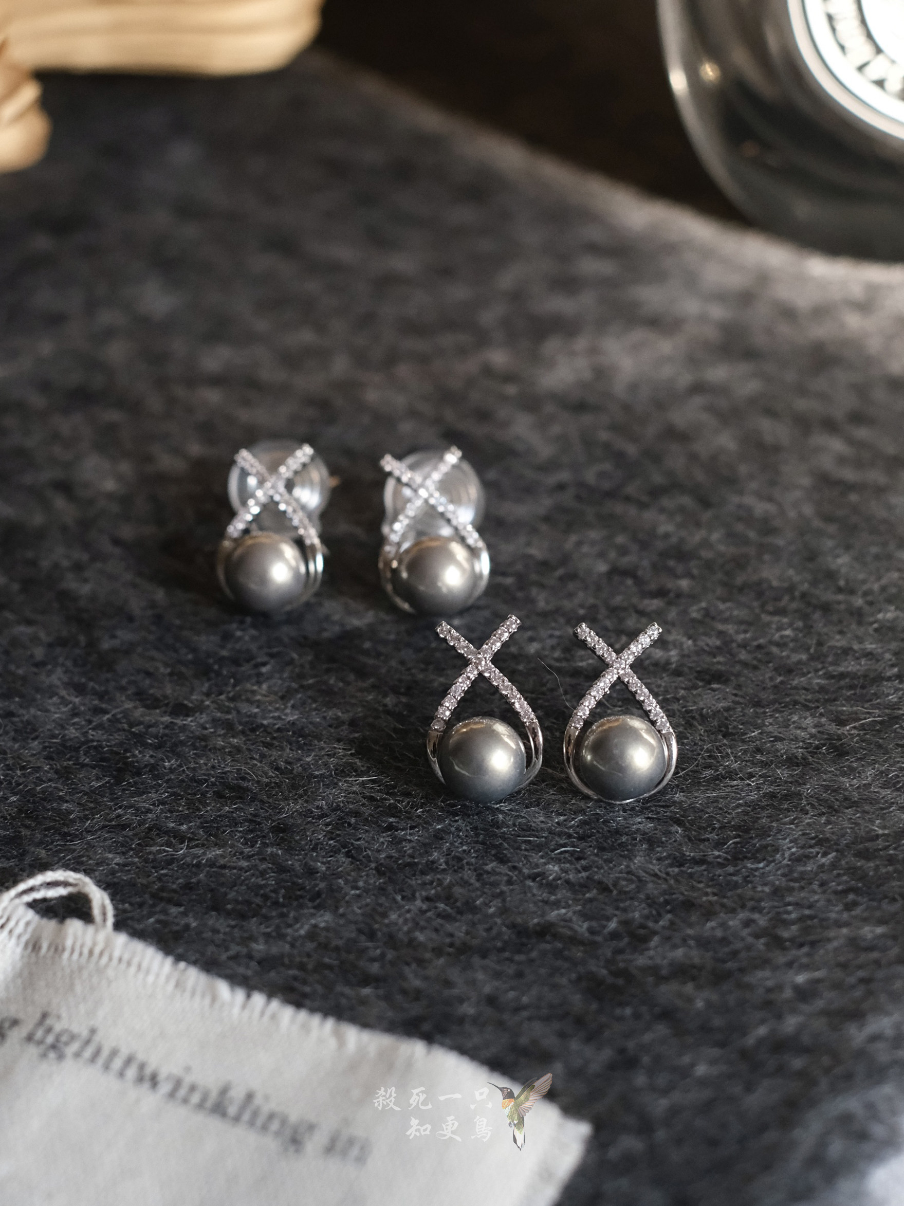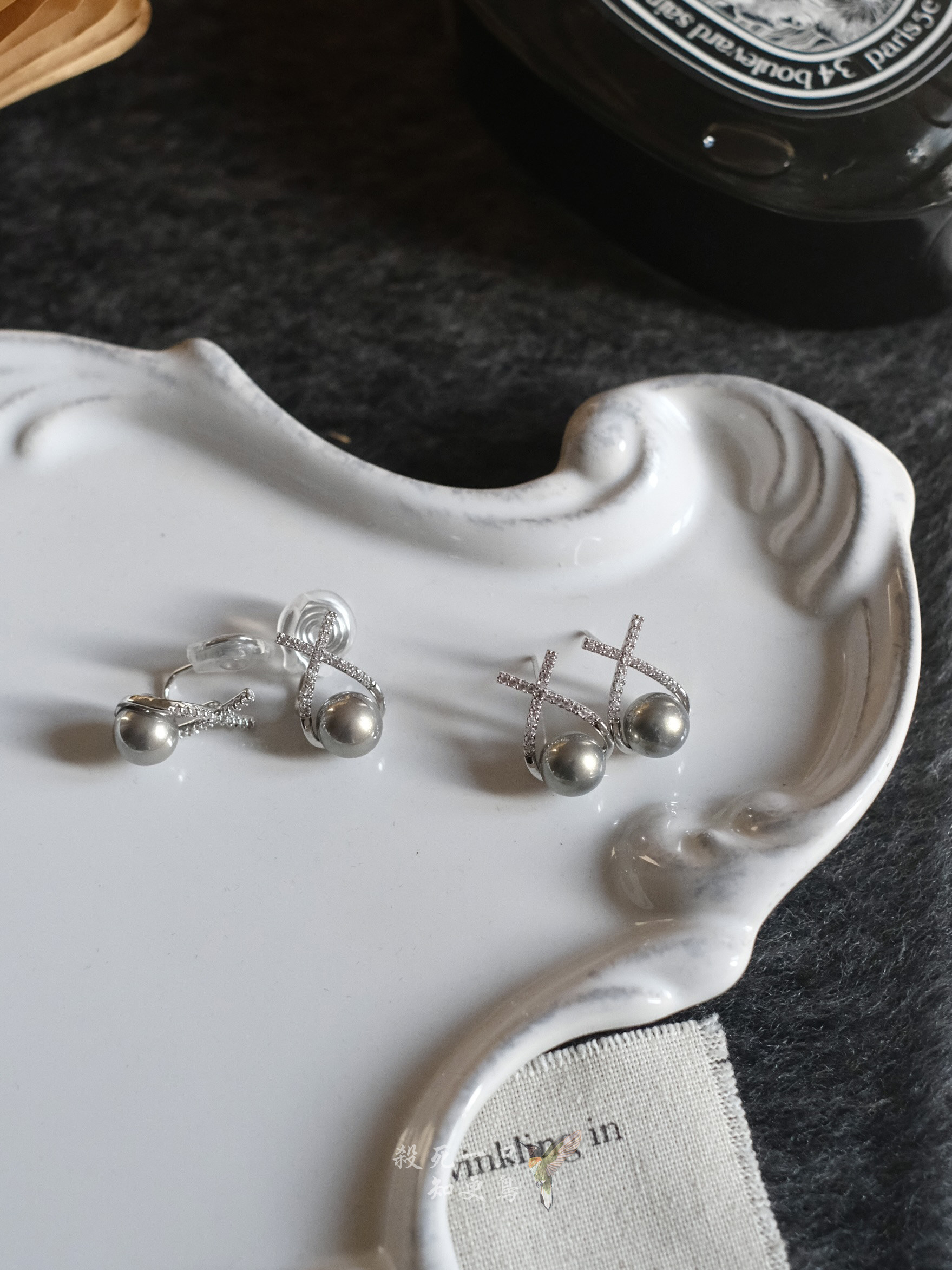 《银色山泉》法式复古高级感锆石银灰色珍珠小众冷淡风耳钉耳夹女