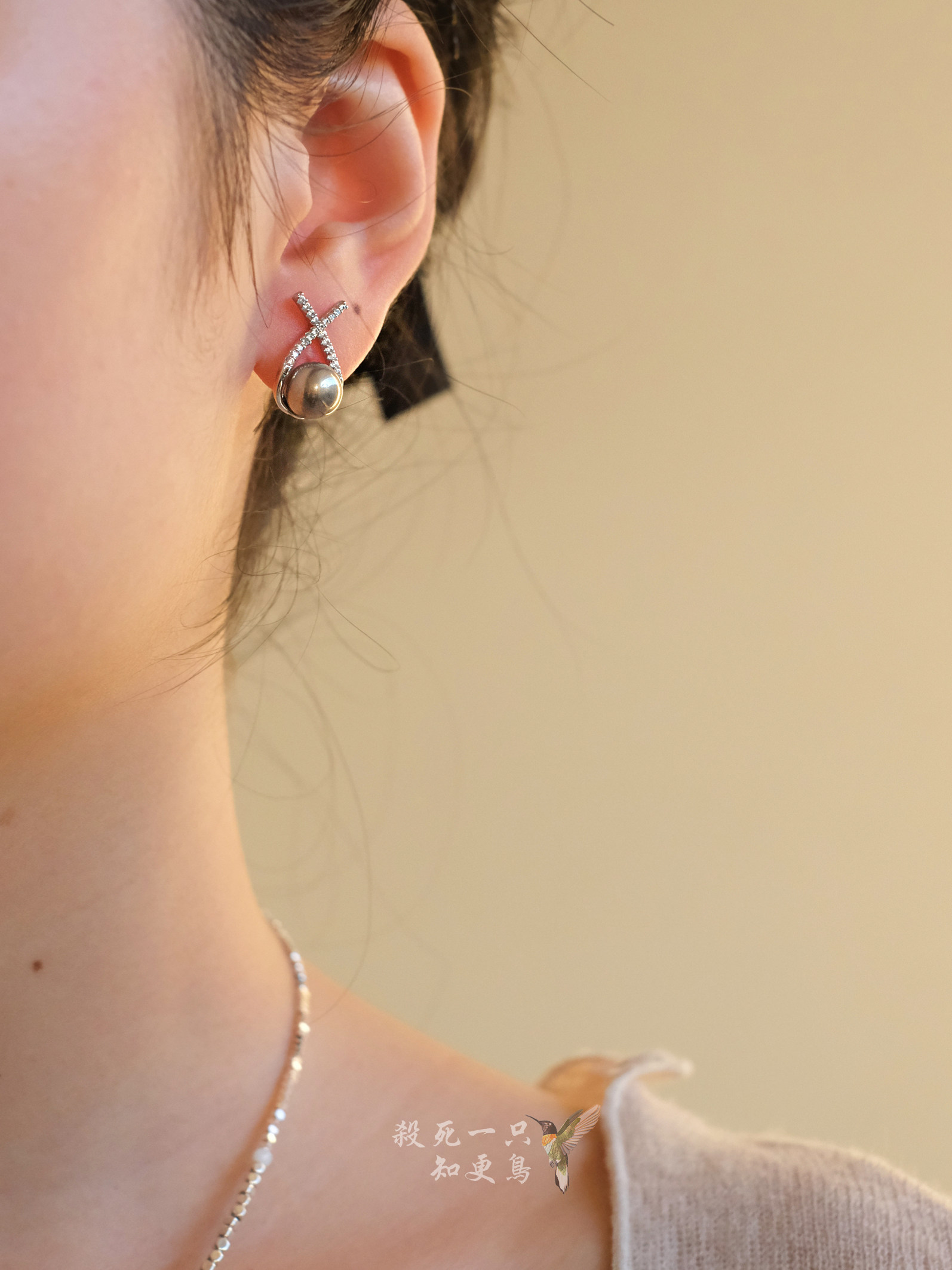 DELTA澳白大溪地黑珍珠耳环耳钉925纯银无耳洞耳夹女简约气质耳饰