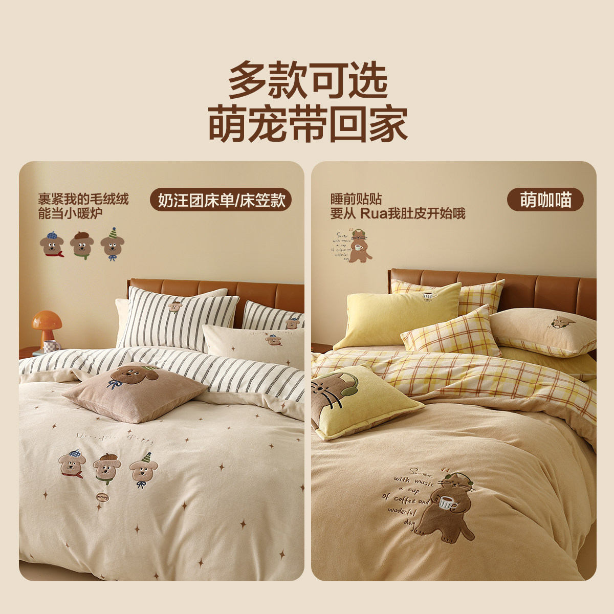 【顺丰快递】慕斯牛奶绒四件套暖绒套件床单床笠秋冬保暖牛奶绒