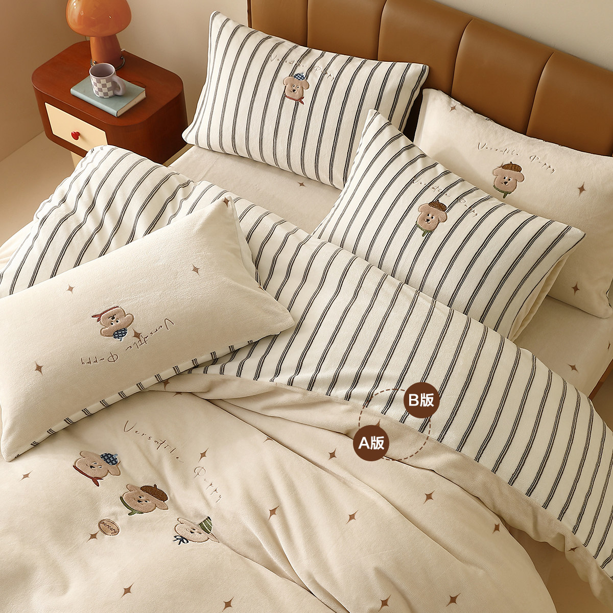 秋冬季加厚四件套牛奶绒被套床单双面加绒被罩床笠学生宿舍三件套