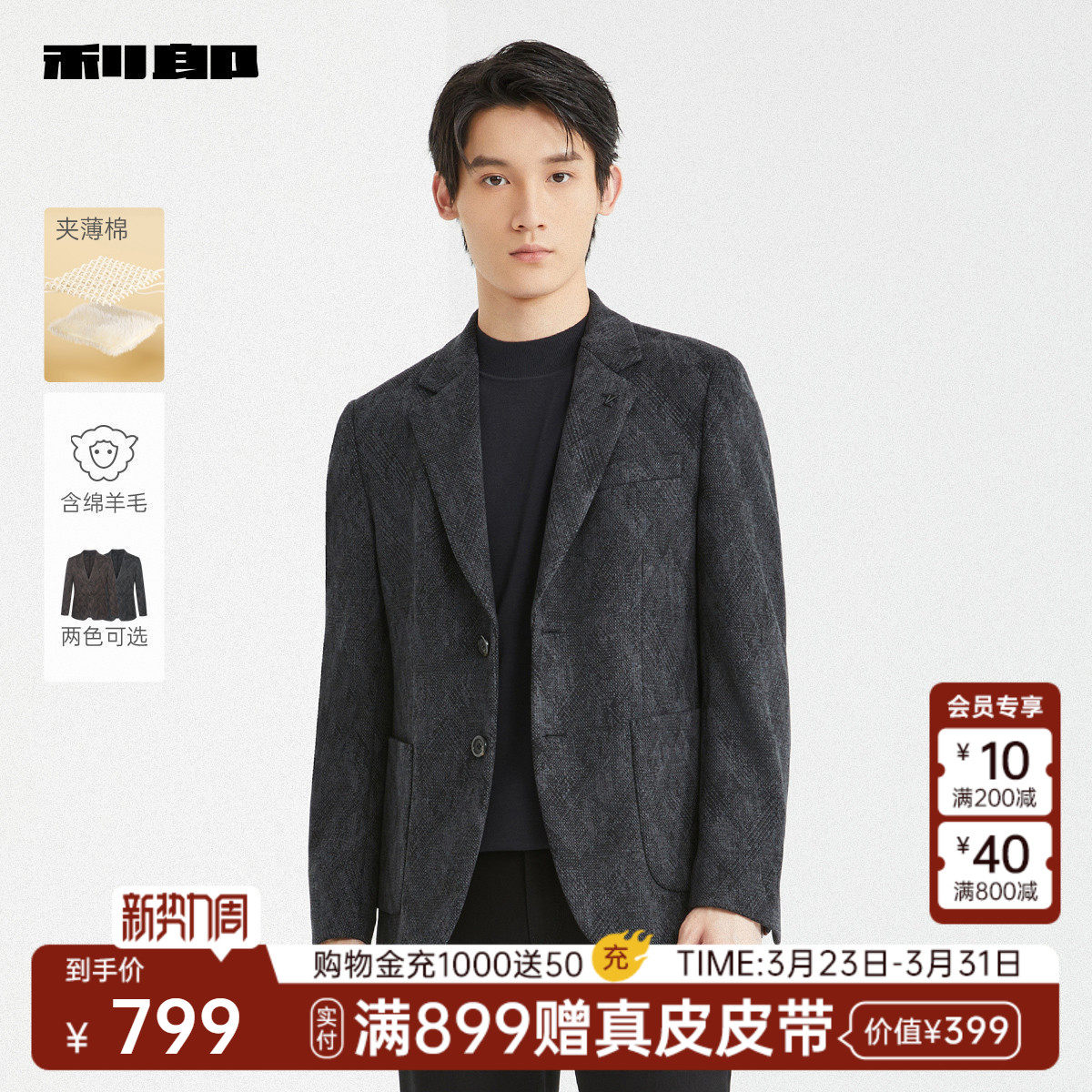 【夹薄棉】利郎官方 毛呢大衣男翻领冬绵羊毛保暖中长款外套