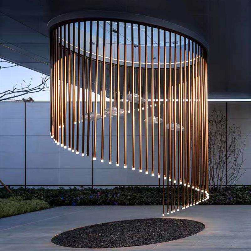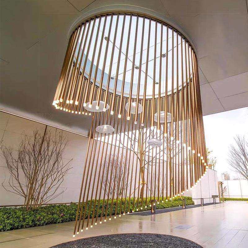 中山灯饰创意吊灯 金色长筒灯楼梯间装饰吊灯 餐厅售楼部沙盘吊灯