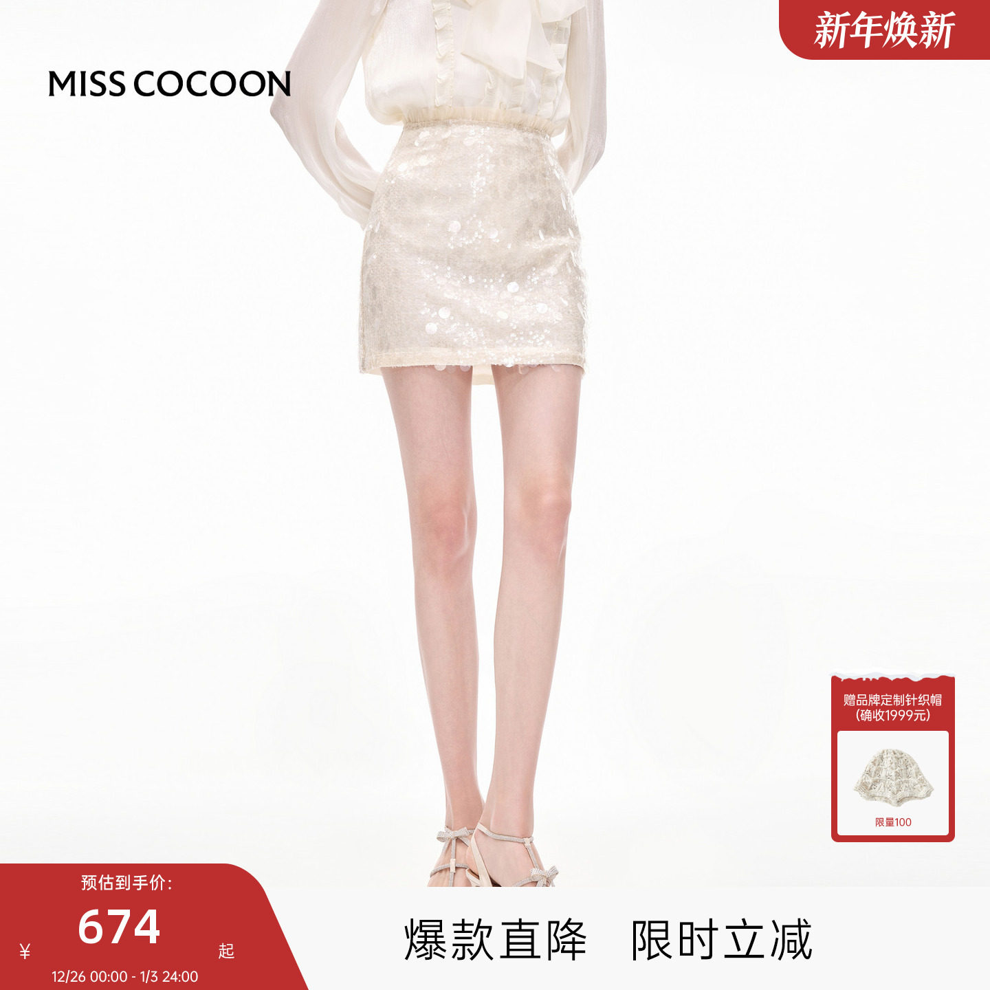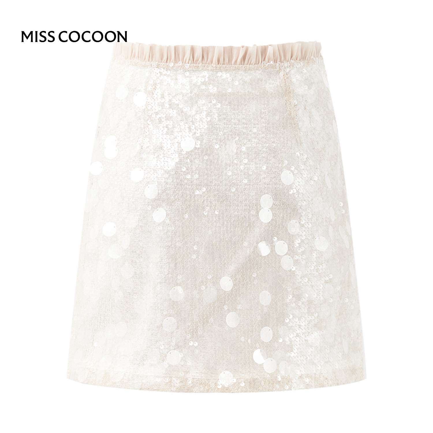 MISSCOCOON可可尼卡其色亮片短裙女款2025秋季新款复古A字半身裙