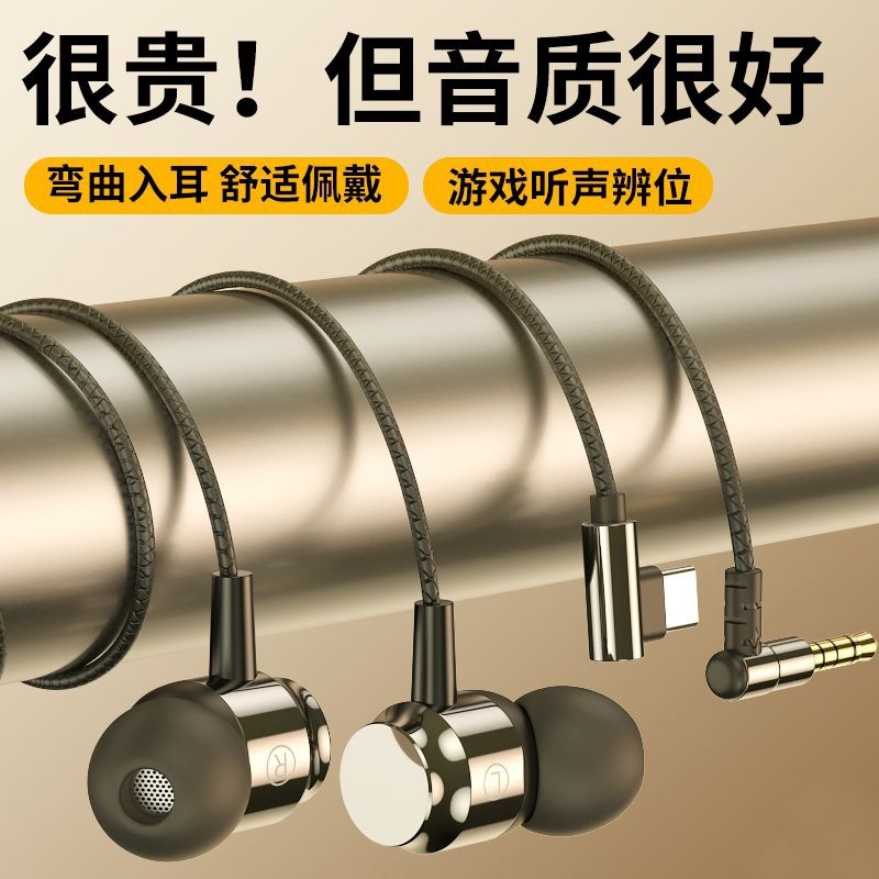 耳机有线入耳式游戏电竞手机弯头typec男女圆孔高音质降噪接口