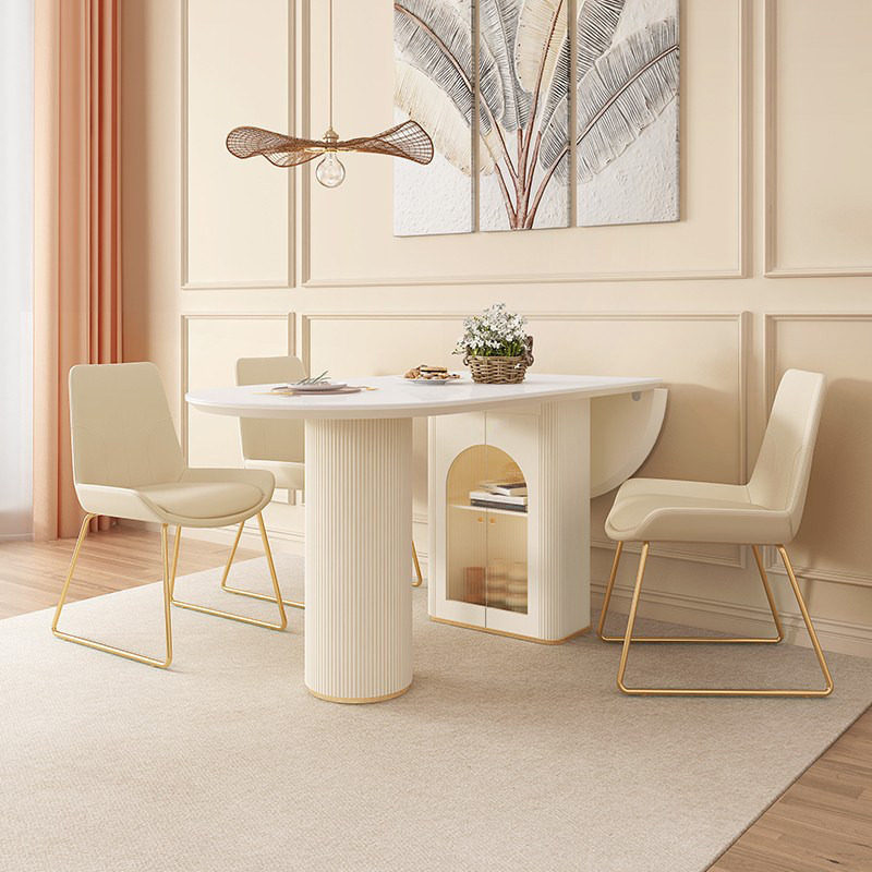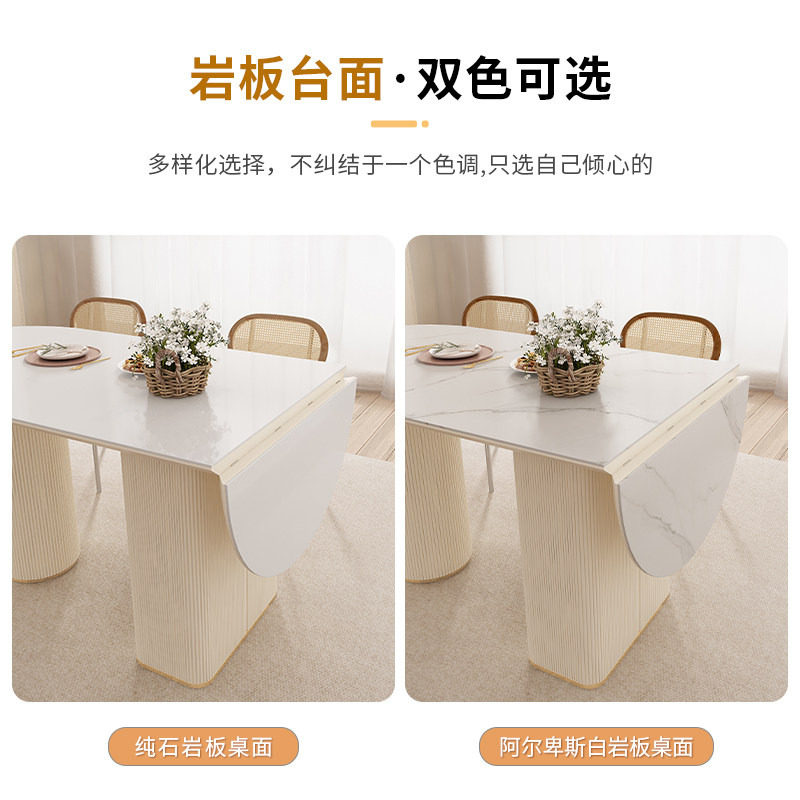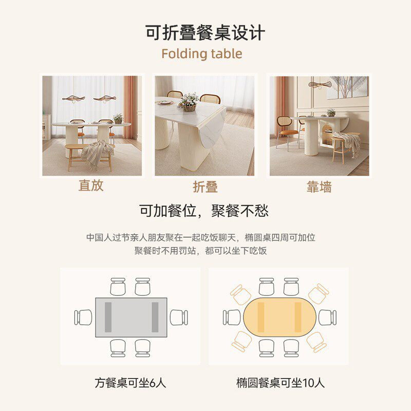 宫殿威仪岩板餐桌椅组合可折叠可方小户型奶油风家用椭圆形饭桌子