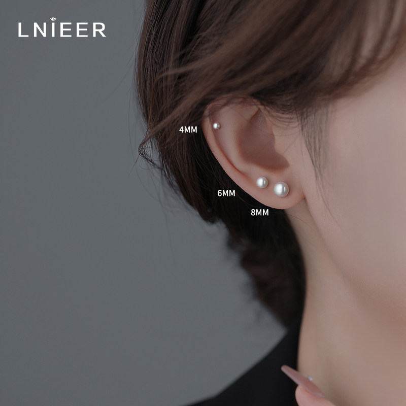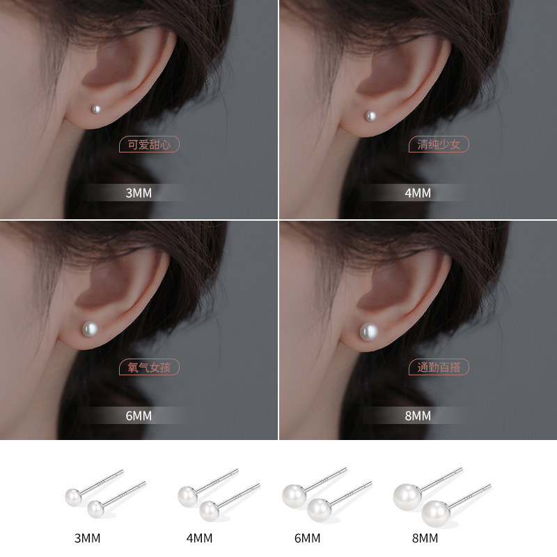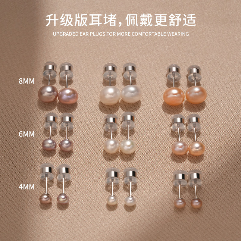 S999纯银淡水珍珠耳钉防堵针养耳洞耳骨钉轻奢高级感耳环百搭耳饰