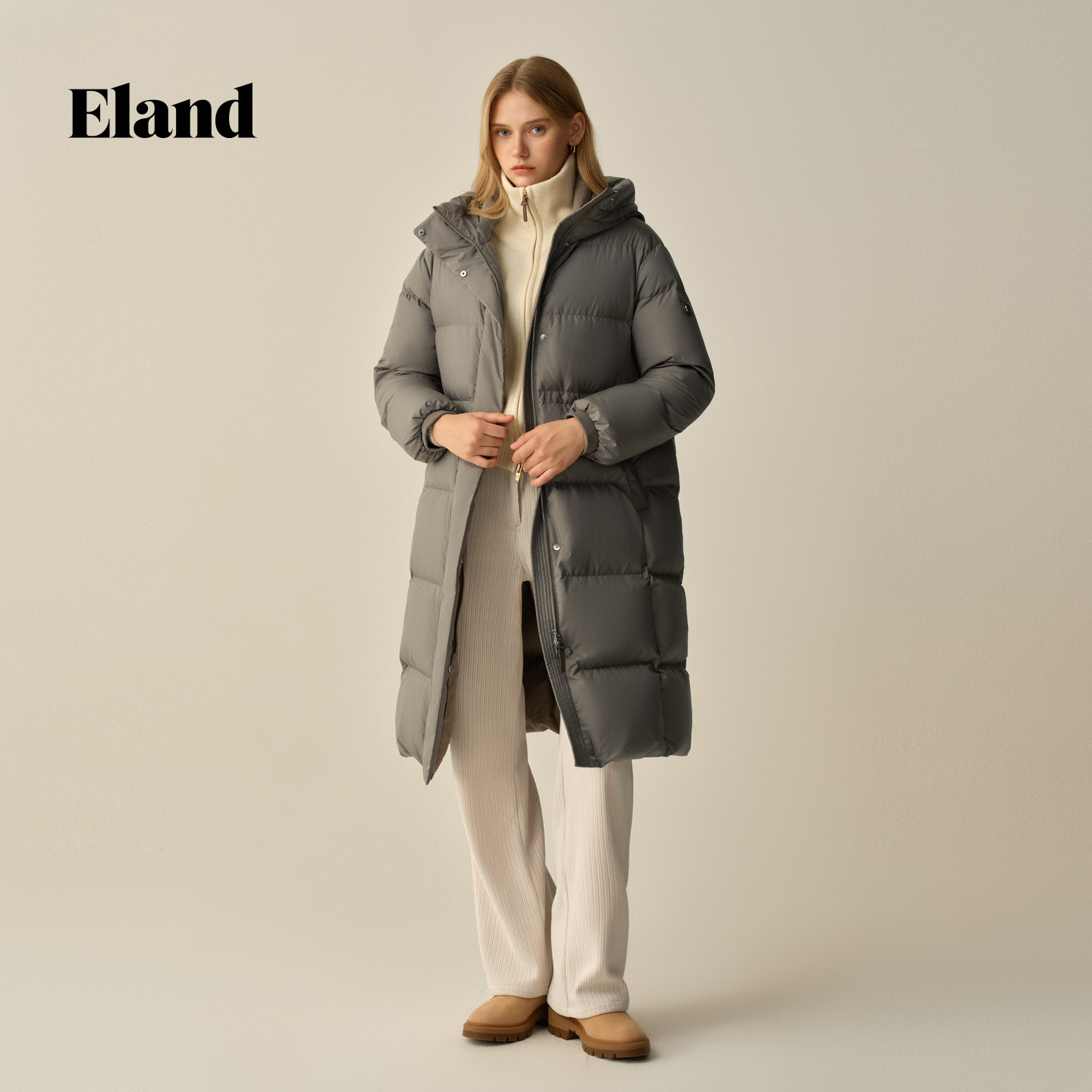 【鹅绒】Eland衣恋羽绒服女中长连帽极寒浴袍式鹅绒外套2025冬新