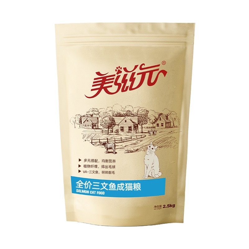 美滋元三文鱼猫粮2.5kg味全价成猫粮成年幼猫5斤十大品牌泌尿鸡肉