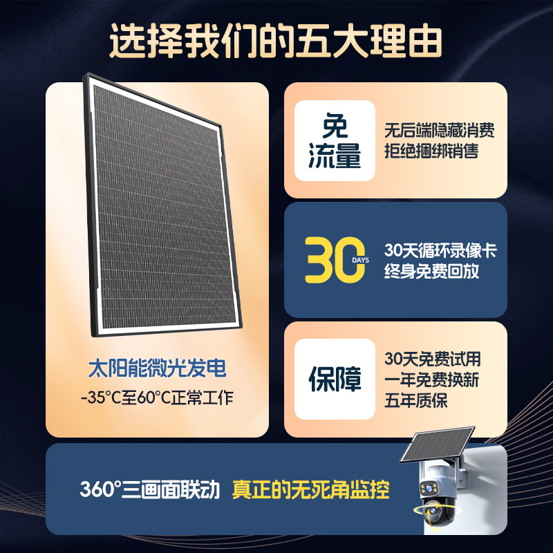 4G太阳能监控器360度无死角手机远程无需网络室外夜视高清摄像头