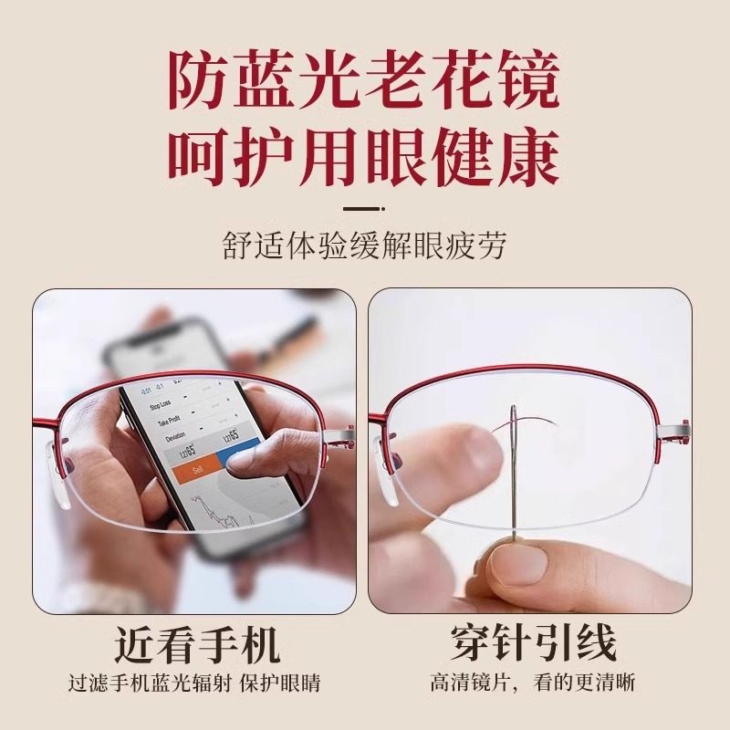 防蓝光老花眼镜女士品牌高档正品官方旗舰店高清中老年人超轻时尚