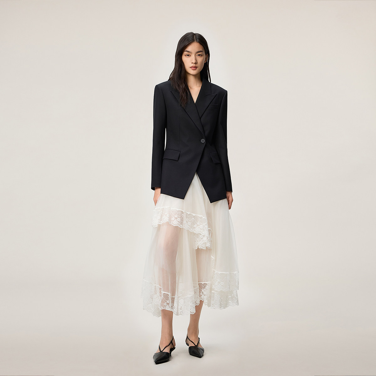 【新品】奚梦瑶同款 欧时力 西装26春精纺呢宽肩收腰挺括中长外套