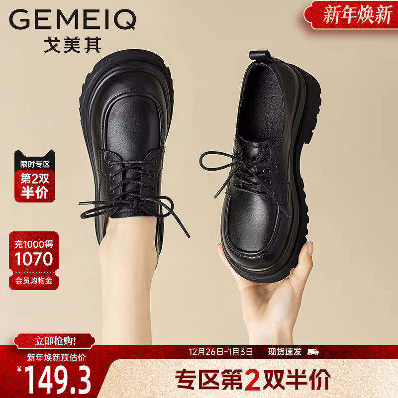 戈美其复古小皮鞋女款厚底舒适新款春季系带松糕单鞋英伦风乐福鞋