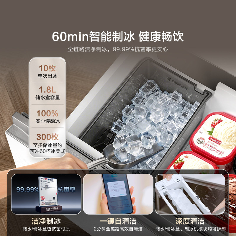 政府补贴美的M60机皇550零嵌入式双系统制冰冰箱家用法式双开四门