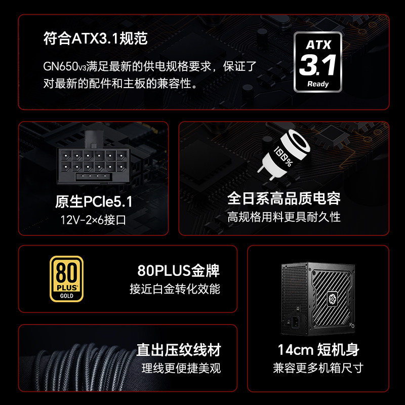 安耐美金竞蝠GN650W台式机电脑主机机箱750/850/1000w金牌电源