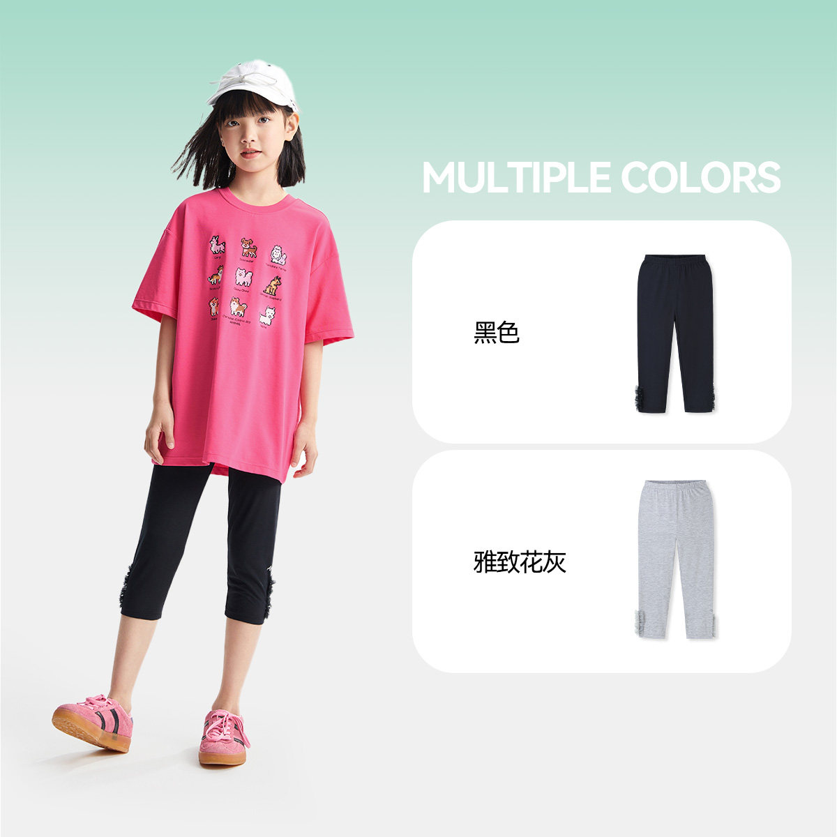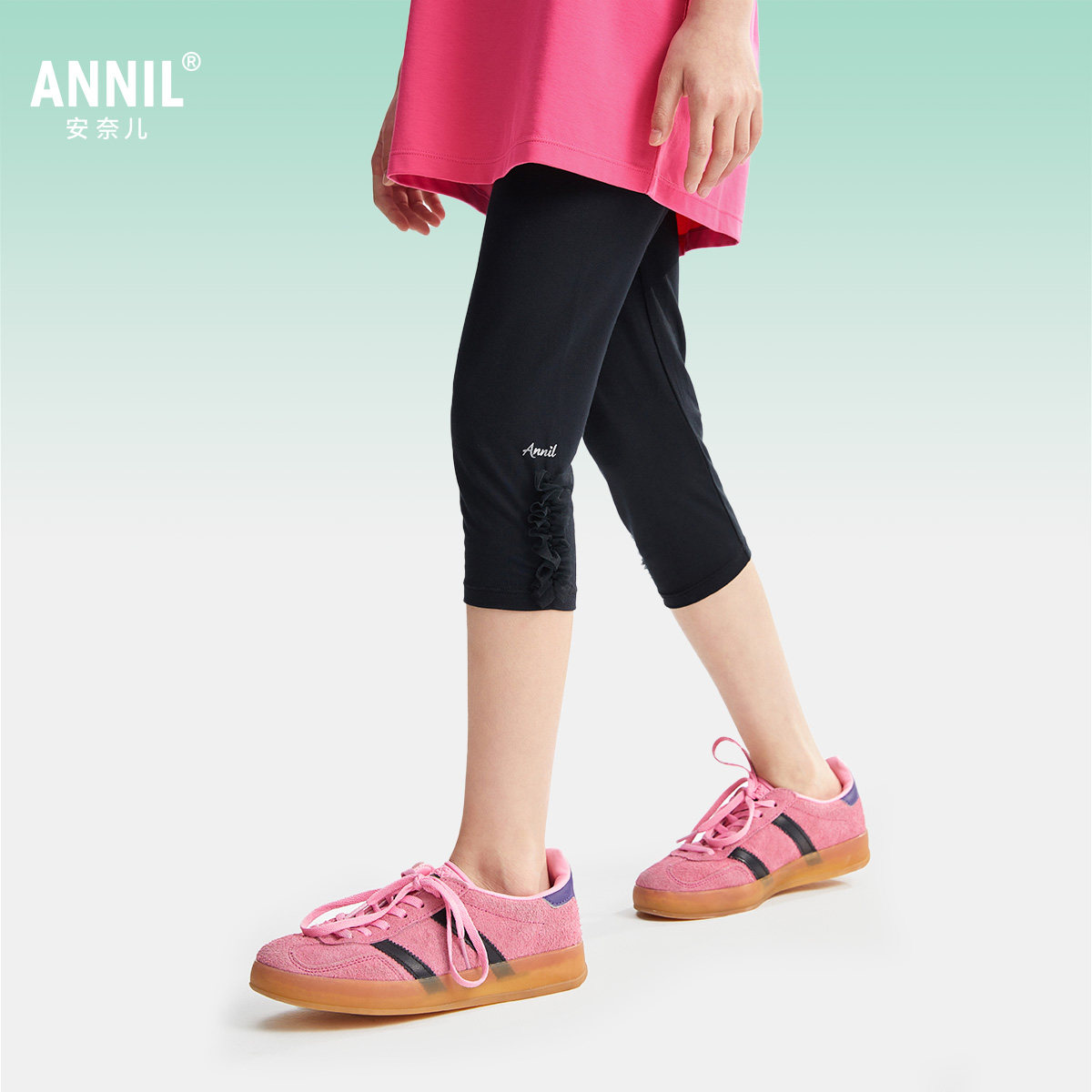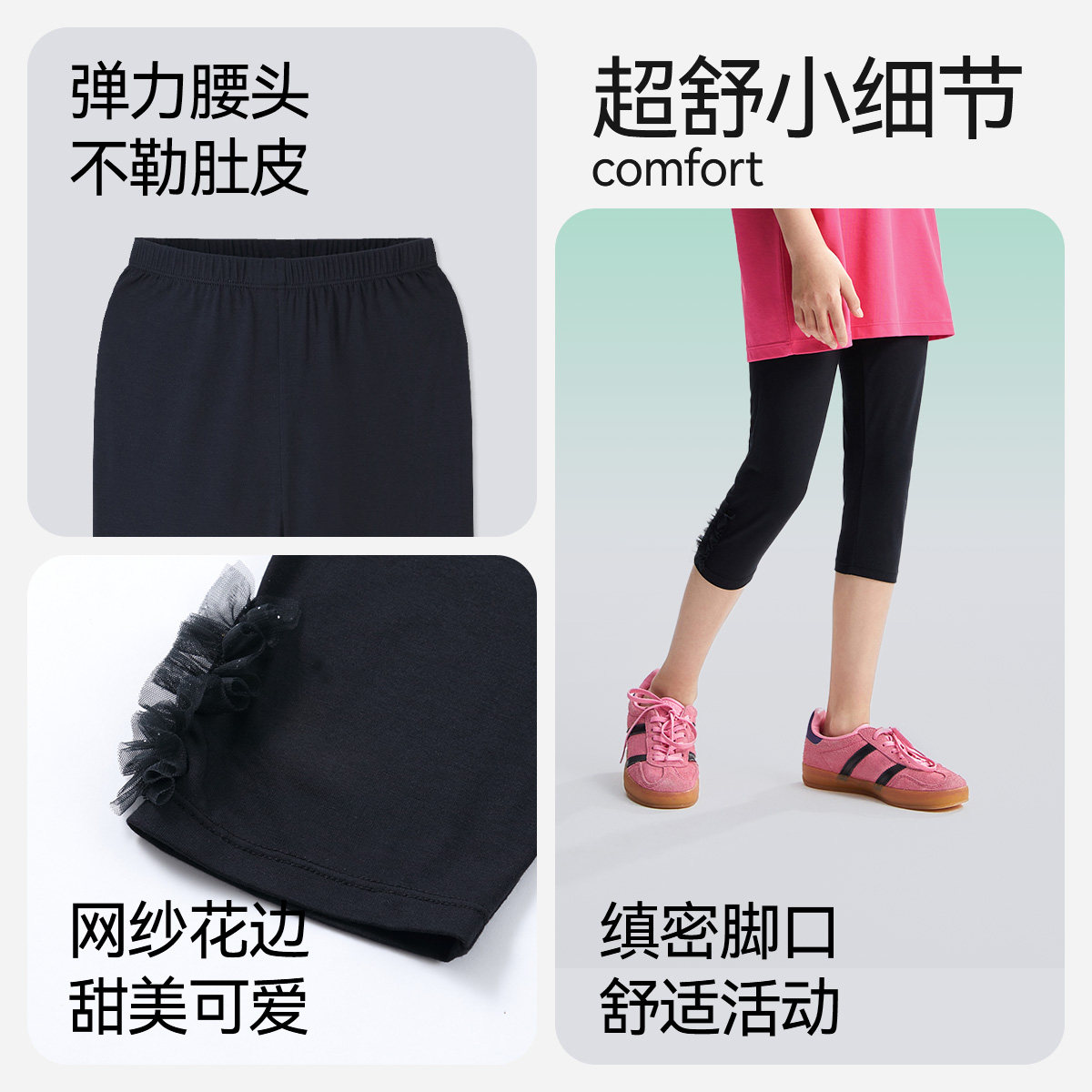 安奈儿童装女童针织打底裤夏新款七分黑色吸湿透气弹力裤子