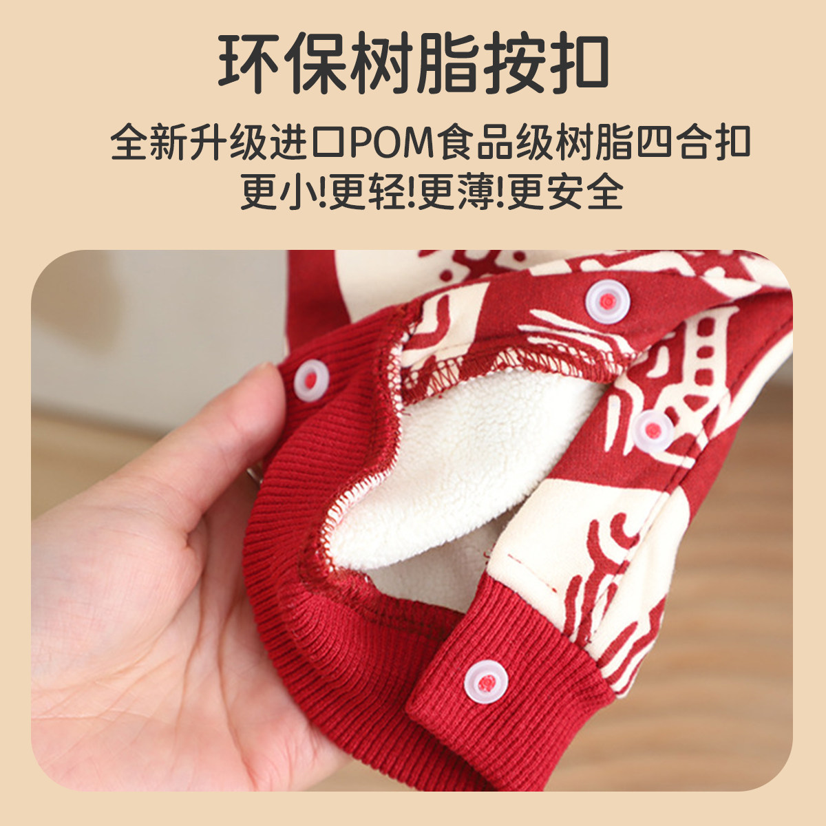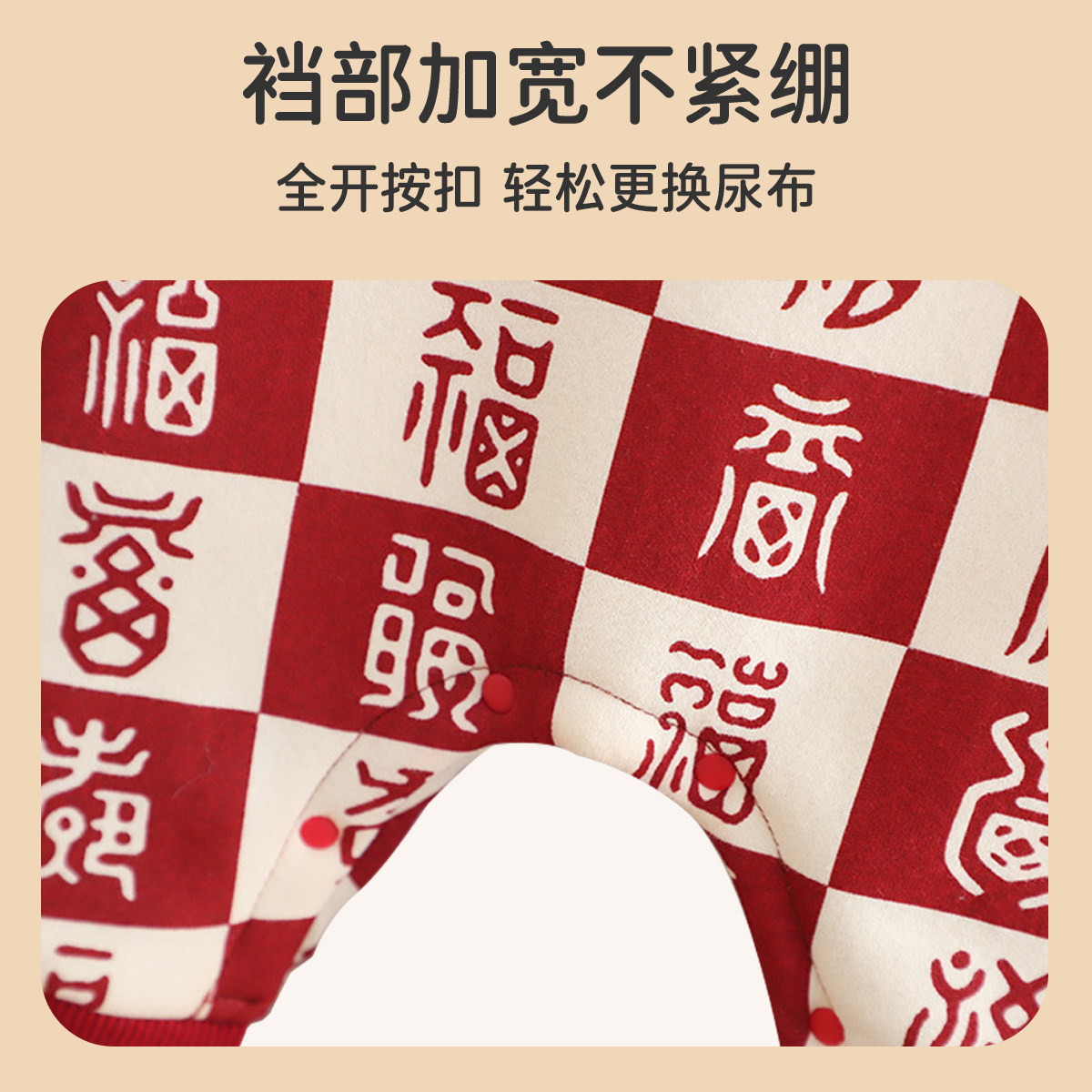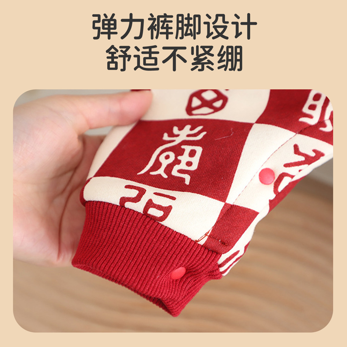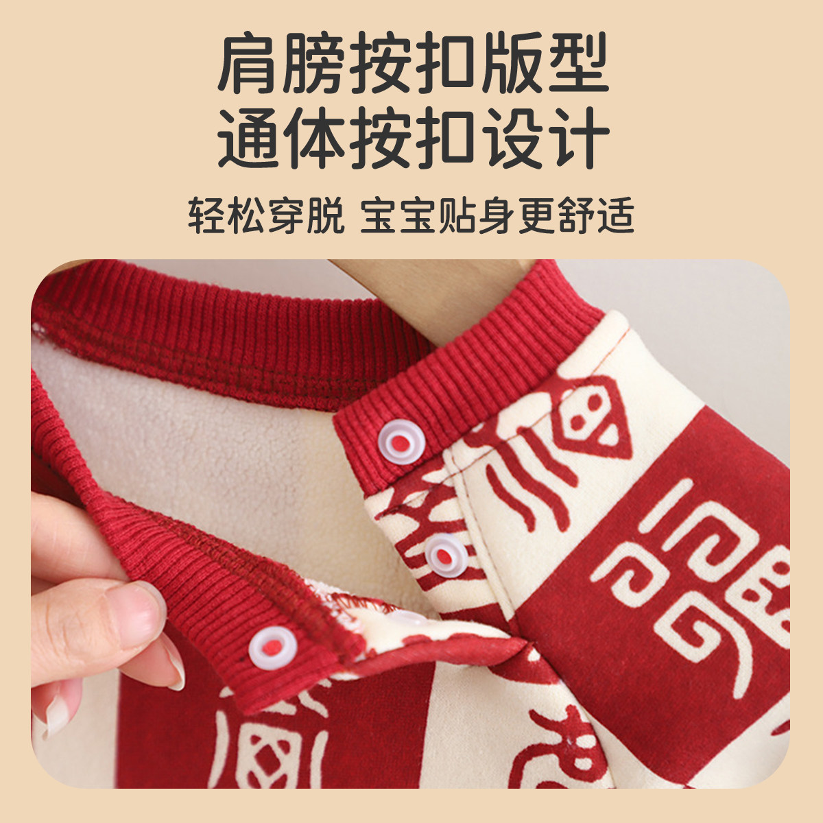 婧麒过年拜年服婴儿冬季加绒哈衣新生儿男女宝宝保暖外出爬爬服冬