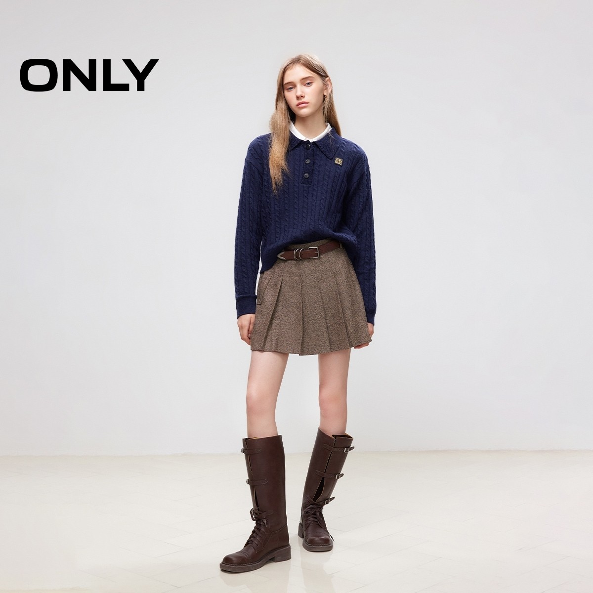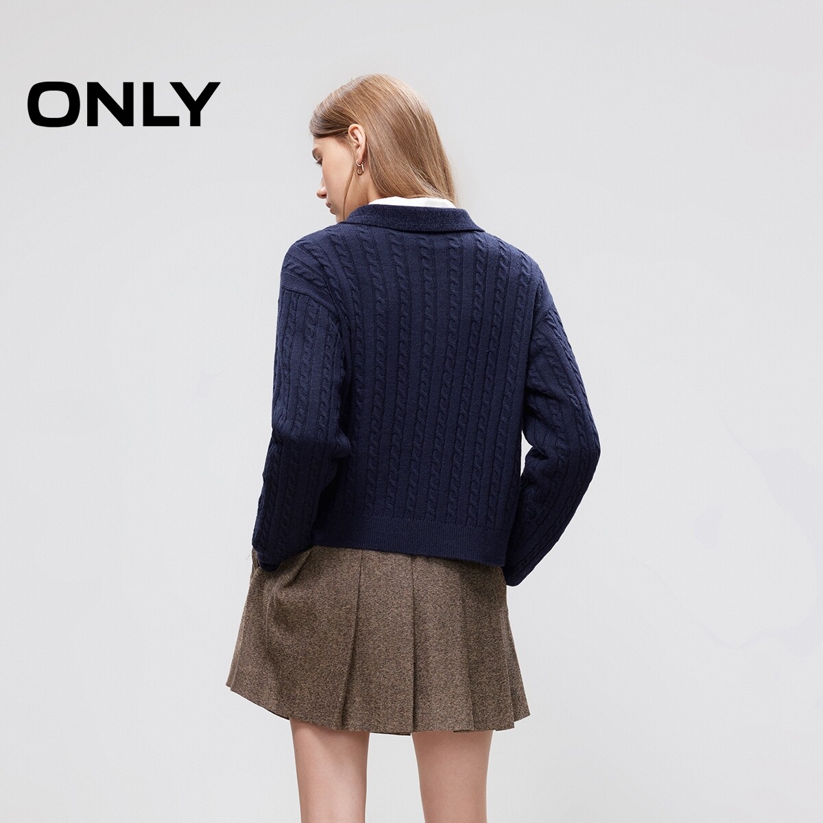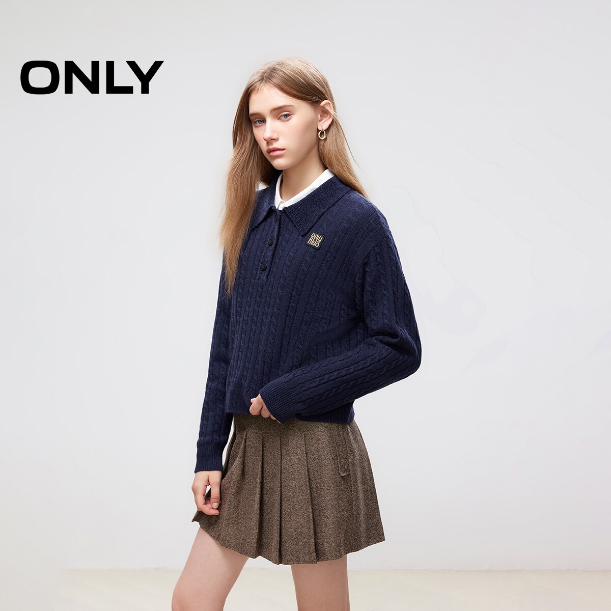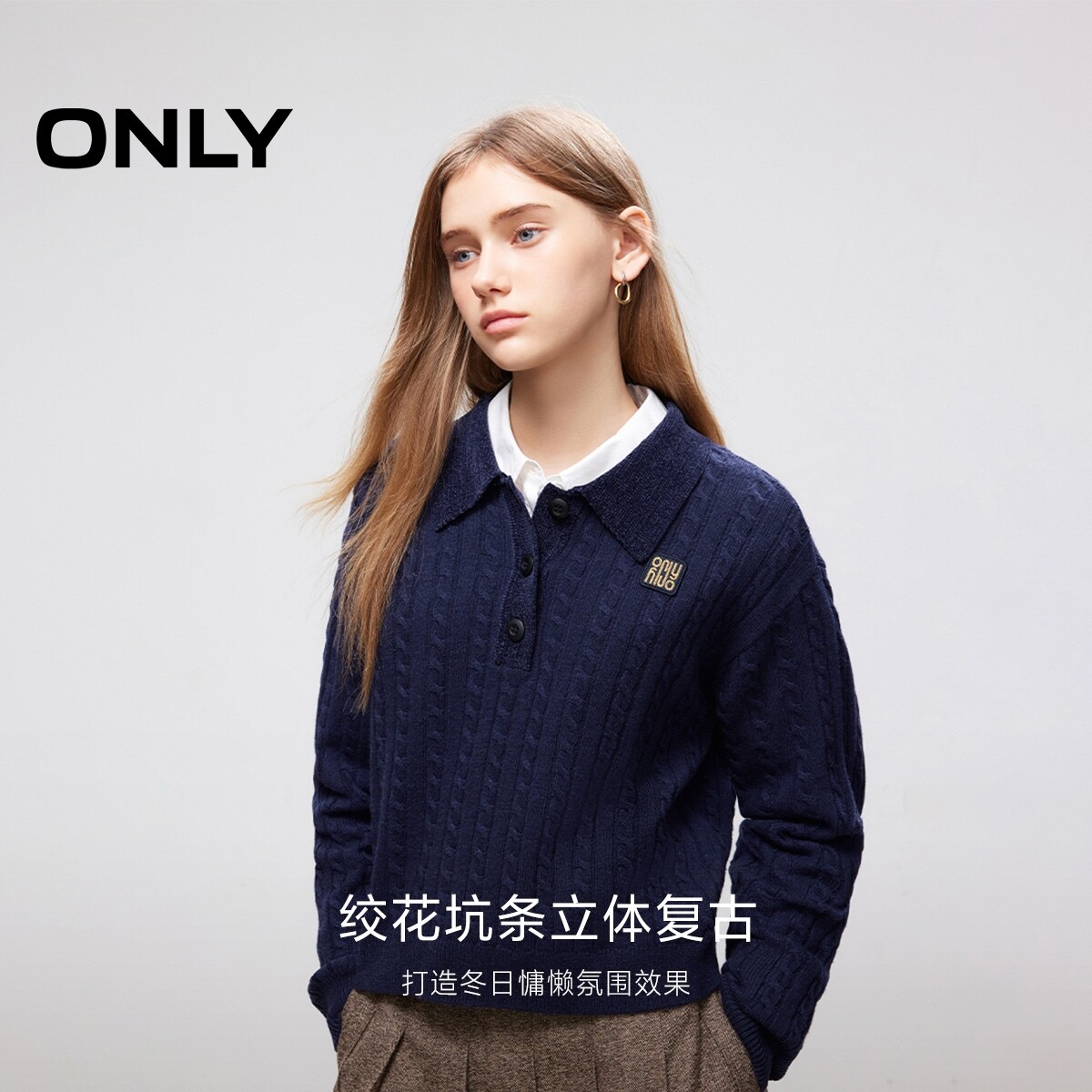 ONLY2026春季新款上衣休闲纯色POLO领长袖毛衣针织衫女|125113001