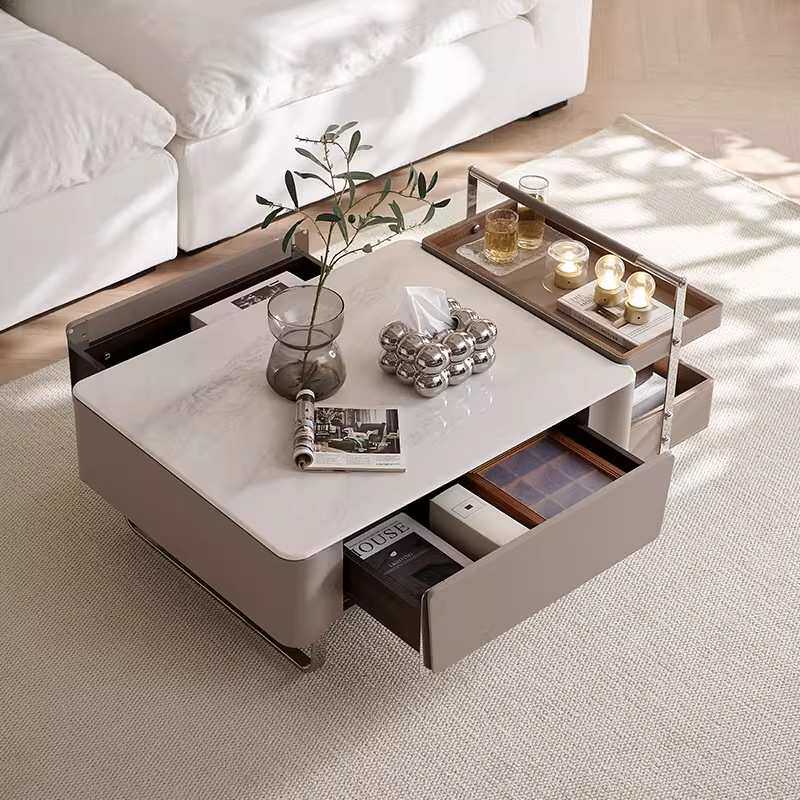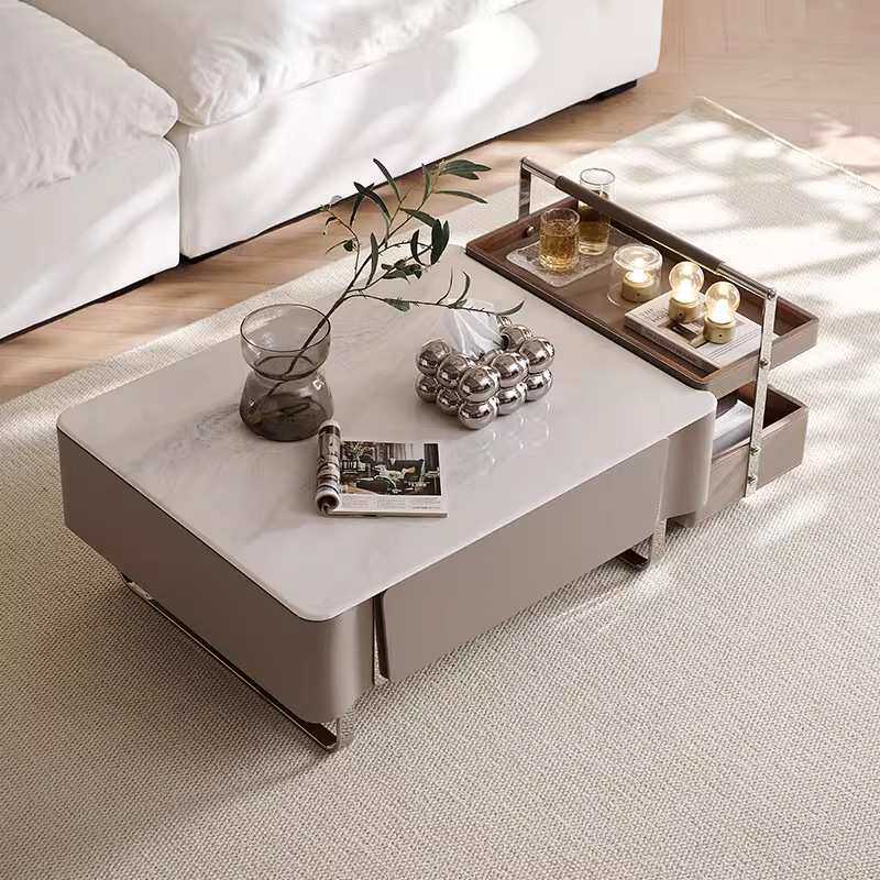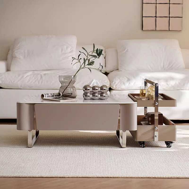 意式极简轻奢小户型岩板马鞍茶几微晶石现代简约方形组合客厅家用